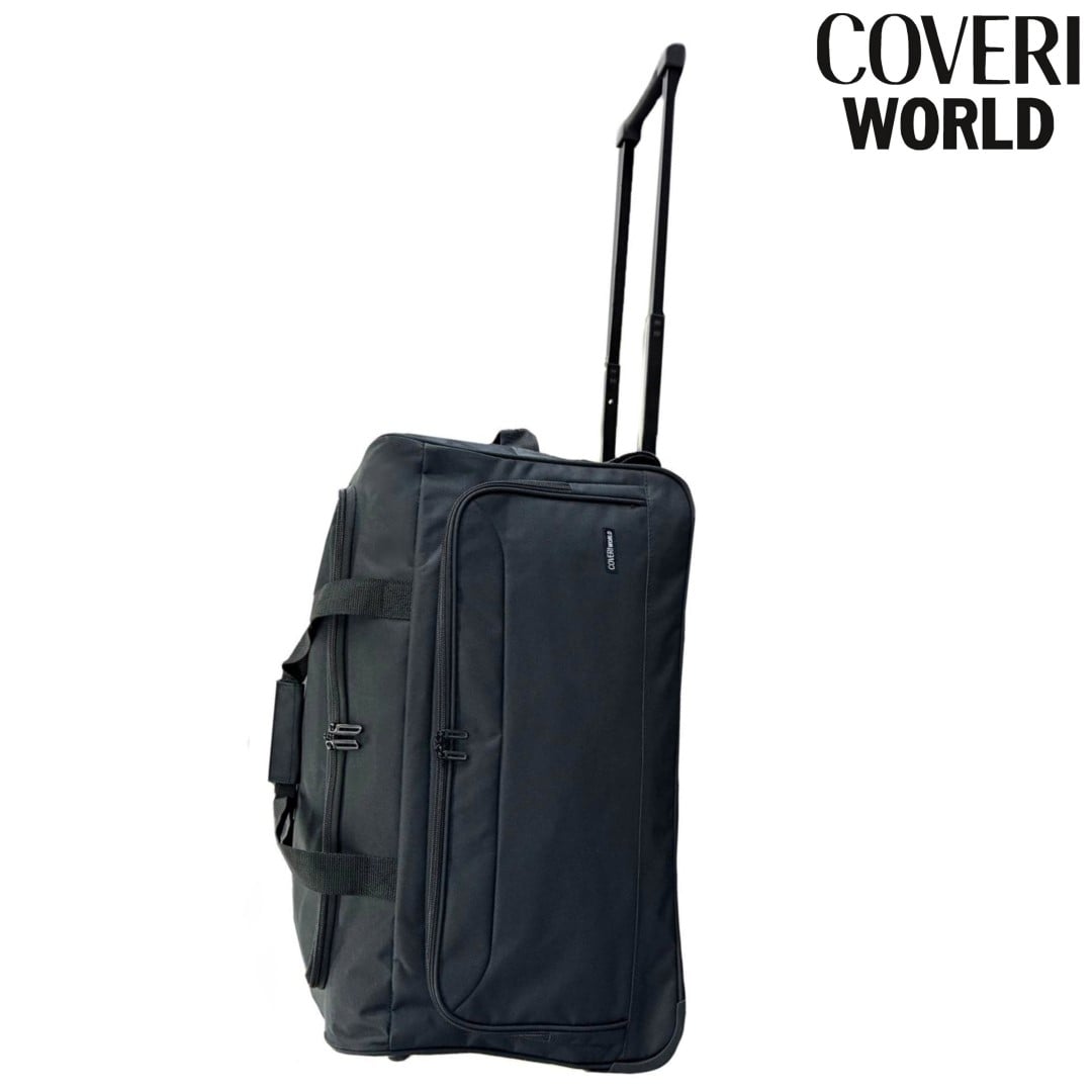 Koffer auf Rädern Kleine Coveri World Turneo ist eine moderne und zuverlässige Reisetasche mit Rollen für alle, die bequem, organisiert und stressfrei reisen möchten. Die Reisetasche enthält ein Hauptfach mit Reißverschluss und ein seitliches Reißverschlussfach zur separaten Aufbewahrung größerer und kleinerer Gegenstände. Der Vorteil dieser Tasche sind zwei hochwertige, teilweise in der Tasche versteckte Gummiräder, die ein ungehindertes, geräuscharmes Fahren auf allen Fahruntergründen ermöglichen und gleichzeitig vor Beschädigungen und Stößen beim Transport geschützt sind. Der ausziehbare Aluminiumgriff befindet sich in einer speziellen Reißverschlusstasche und ist nicht sichtbar, wenn die Tasche an den Handschlaufen getragen wird. Ob auf Geschäftsreise oder Wochenendausflug, die Coveri World Tasche ist Ihr zuverlässiger Begleiter – praktisch, langlebig und immer bereit für eine neue Reise. Die Reisetasche ist so konzipiert, dass sie den Standardmaßen für Handgepäck bei den meisten Billigfluggesellschaften wie Ryanair, Wizz Air und easyJet entspricht.