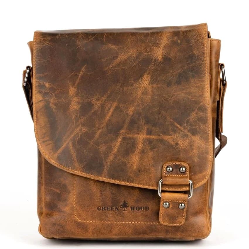 Lederschultertasche Green Wood Tomas ist eine handgefertigte Tasche aus hochwertigem Leder. Sie besticht durch ihren „Used-Look“-Look, und das Innere der Tasche ist mit hochwertigem Stoff gefüttert. Die Tasche besteht aus zwei Hauptschubladen und einer In