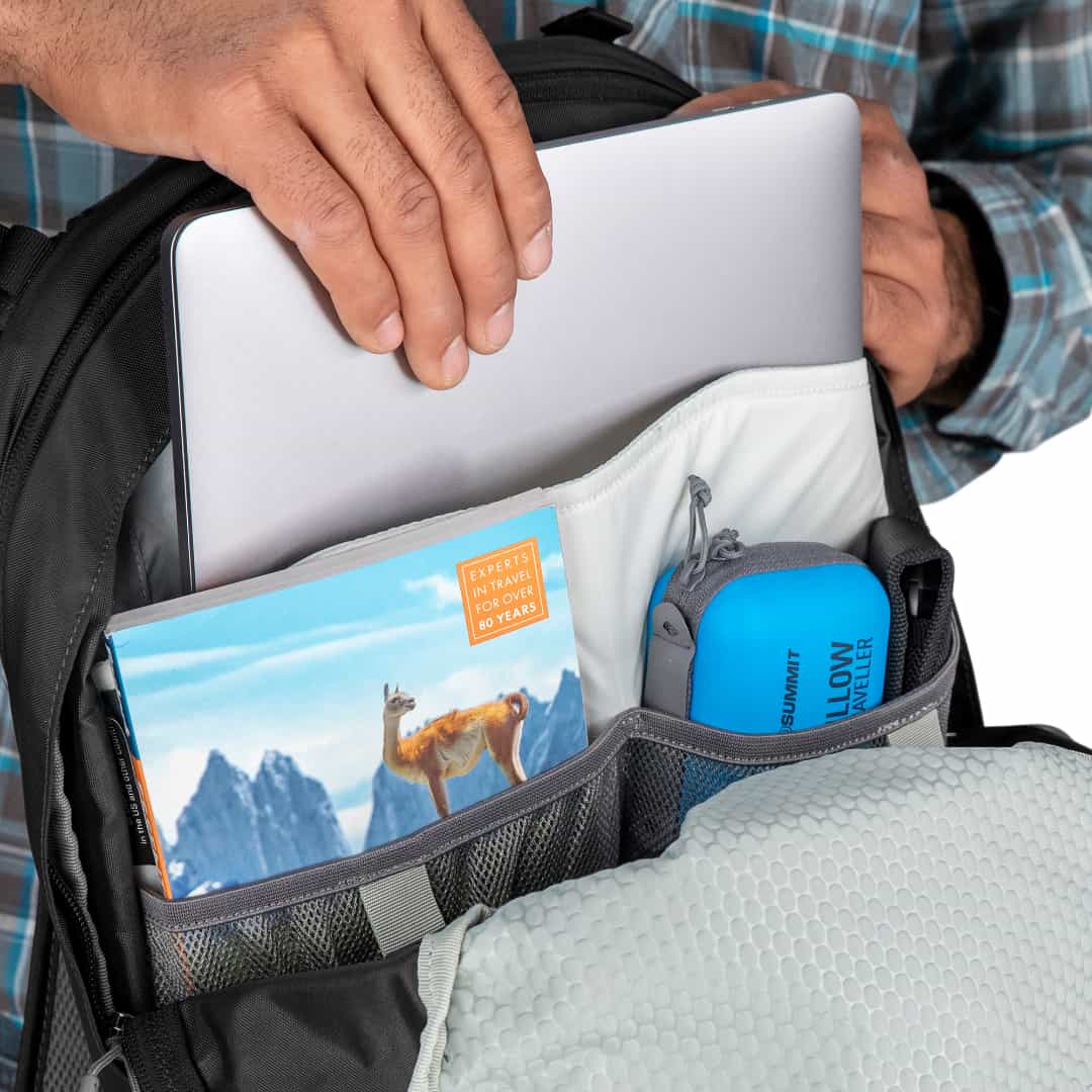 Rucksack Osprey Daylite Travel ist ein Tagesrucksack, der sich von anderen abhebt. Er ist perfekt dafür geeignet, dein Reiseziel zu erkunden, hat viele Organisationsfächer, wo du Dokumente und Pässe beim Reisen verstauen kannst und seine sichere Konstrukt
