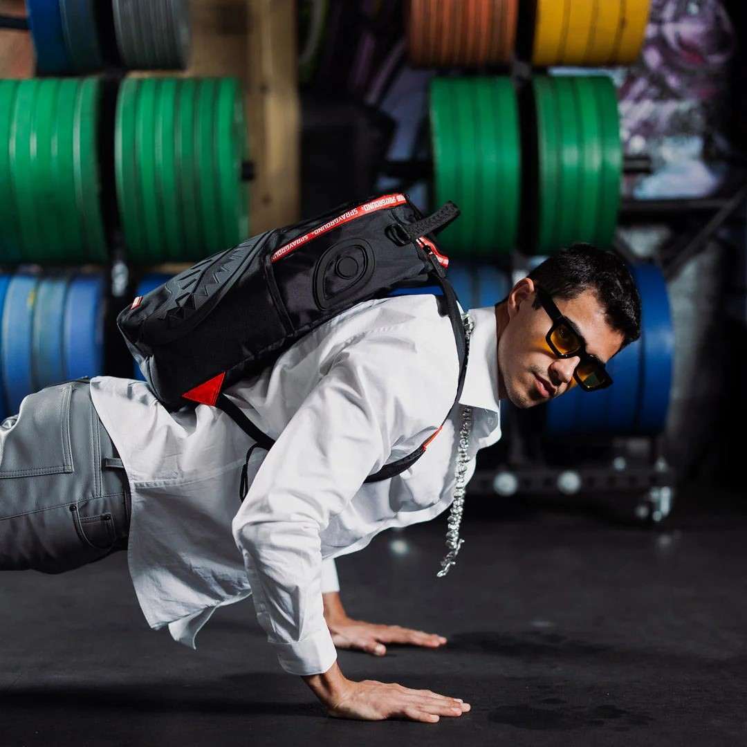 Rucksack Sprayground Printed Zipper Shark Dlxr ist ein modernes und praktisches Stück, das Stil und Funktionalität vereint. Es ist in Schwarz mit einem erkennbaren Motiv gestaltet, was ihm einen sportlichen und mutig aggressiven Look verleiht.