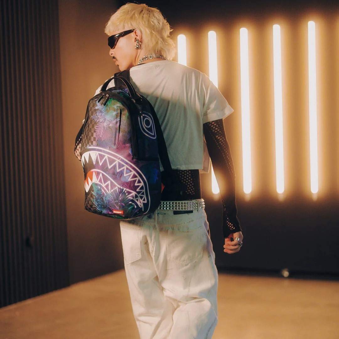 Rucksack Sprayground Treehouse Party DLXSV ist ein einzigartiges und auffälliges Stück, das alle Blicke auf sich zieht. Der Rucksack ist mit einem kräftigen und farbenfrohen tropischen Blattmotiv und dem ikonischen Schachbrettmuster gestaltet.