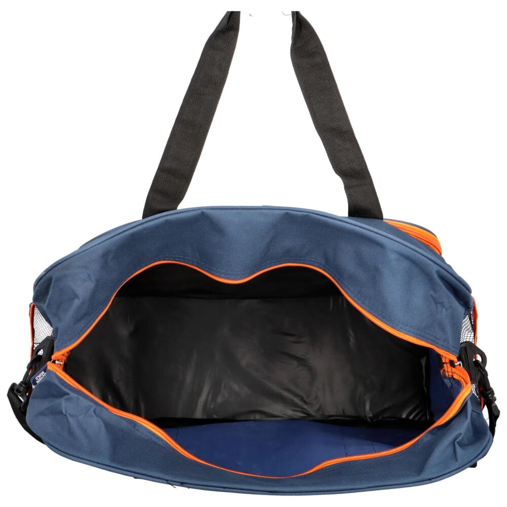 Duffle Coveri World Gym is designed for users who value practicality, lightness and simplicity. It is made of water-resistant synthetic fibers that ensure durability and protection of your personal items in all weather conditions. The travel bag contains one main zippered compartment for transporting larger items of clothing, one smaller front zippered pocket for quick access to smaller personal items, and two side mesh compartments for separate storage of smaller items. Protective feet are placed on the bottom of the bag, which prevent direct contact of the bottom of the bag with the ground, which reduces wear and increases the life of the bag. The bag can be carried in the hand with two shorter straps or with an adjustable shoulder strap over the shoulder. The empty bag can also be easily folded, for maximum space saving when storing or travelling. Due to its dimensions and soft sporty shape, the bag is suitable for various purposes, whether for sports activities, weekend trips or as additional luggage. It doesn't get any easier, easier and more convenient.