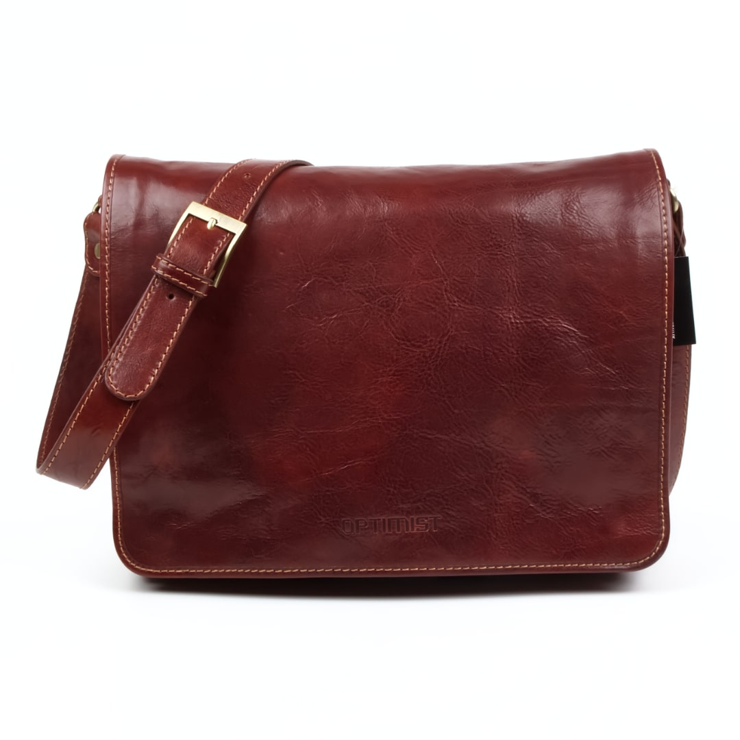 Leather Bag Optimist OP870495 is made of genuine leather and matches an elegant look as well as a more sporty one. The leather bag comes with a strap for over the shoulder and the length of the strap can be modified. There are two main compartments and a