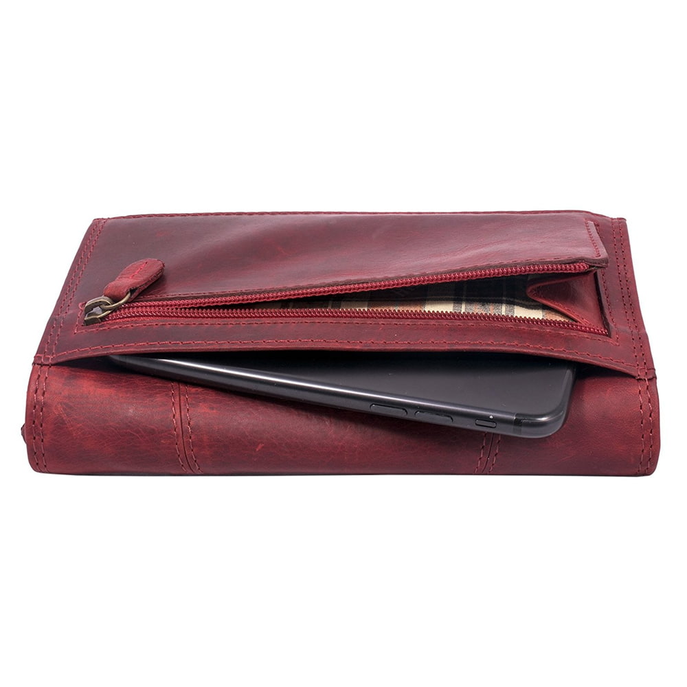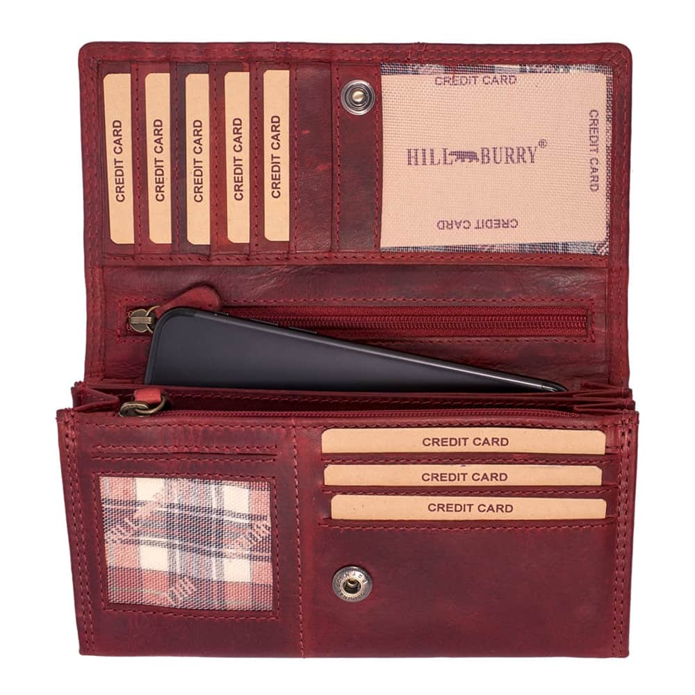 Leather wallet for women Hill Noa Burry Dona an exclusive, handmade wallet made of genuine soft leather that has a distinctive and specially used look and stands out due to natural tanning and oiling. The wallet is very spacious and practical and will impress you with its perfectly arranged, transparent interior, where you can neatly store banknotes, cards, various documents and coins. Pleasantly soft to the touch and its interior and exterior complement each other beautifully and elegantly. Also equipped with the latest RFID technology. This means that all your contactless payment cards are optimally protected against theft. A stylish vintage accessory for women for safe and long term use.