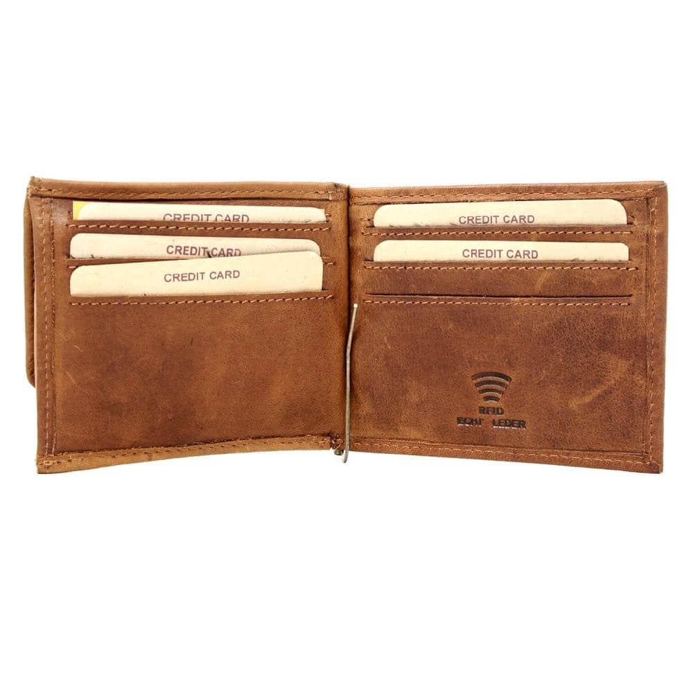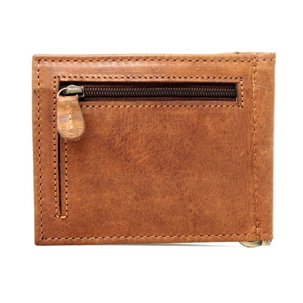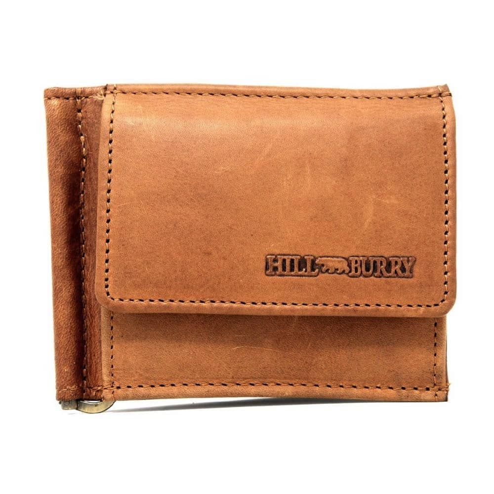 Money clip leather wallet Hill Burry Secure is convenient and suitable for any pocket due to its small dimensions. A unique handmade product made of the best aniline leather. In the front there is a deep space for coins with a push button, and in the middle there is a quality metal clip, which is intended for easy storage of cash. It also contains 8 hemmed slots for various cards and a outside pocket with a zipper for coins. A top product with a robust appearance and a long service life.