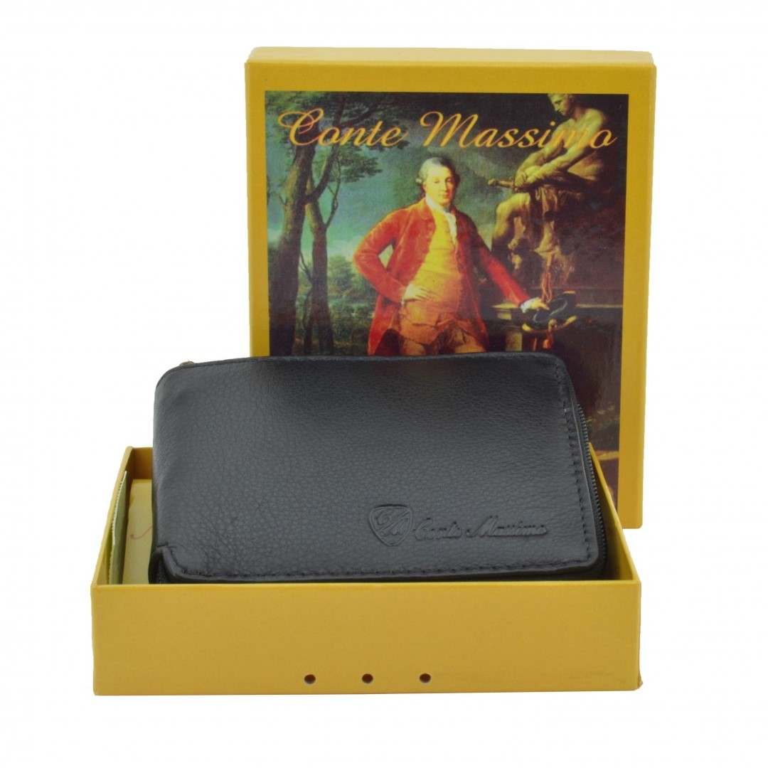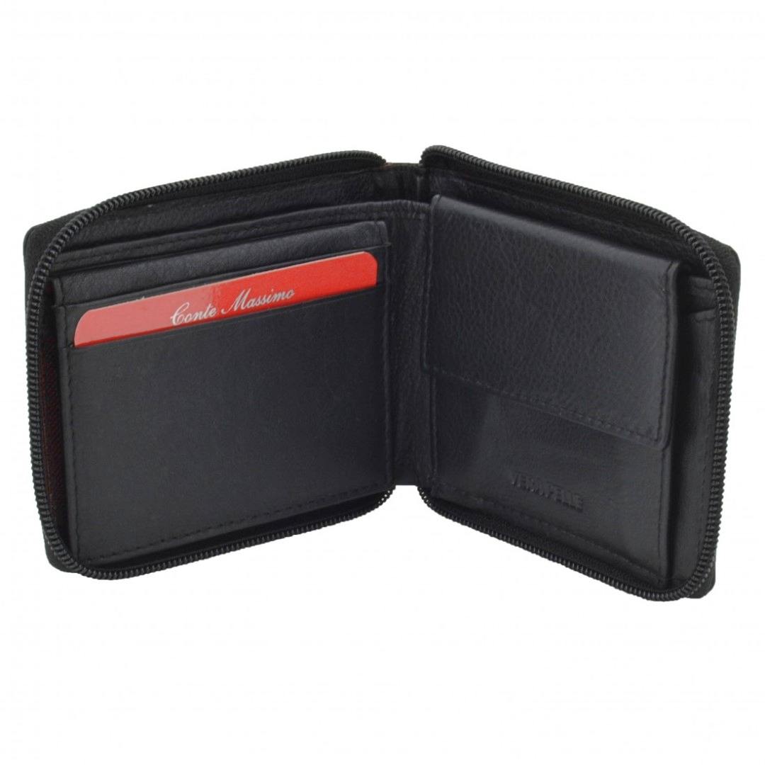 Men's leather wallet Conte Massimo Zippy is designed for the modern man who swears by neatness without unnecessary ballast. The compact design with a zipper allows you to safely store everything you need. It is made of naturally soft leather, which impresses with its tactile feel and long life. Due to the thoughtful layout of the interior, despite its small dimensions (10.5 x 8.5 x 2 cm), it offers surprisingly much space. The perfect choice for any pocket - trouser or jacket - without feeling heavy or awkwardly protruding. This is a wallet for men who appreciate minimalist style, practicality and timeless design.