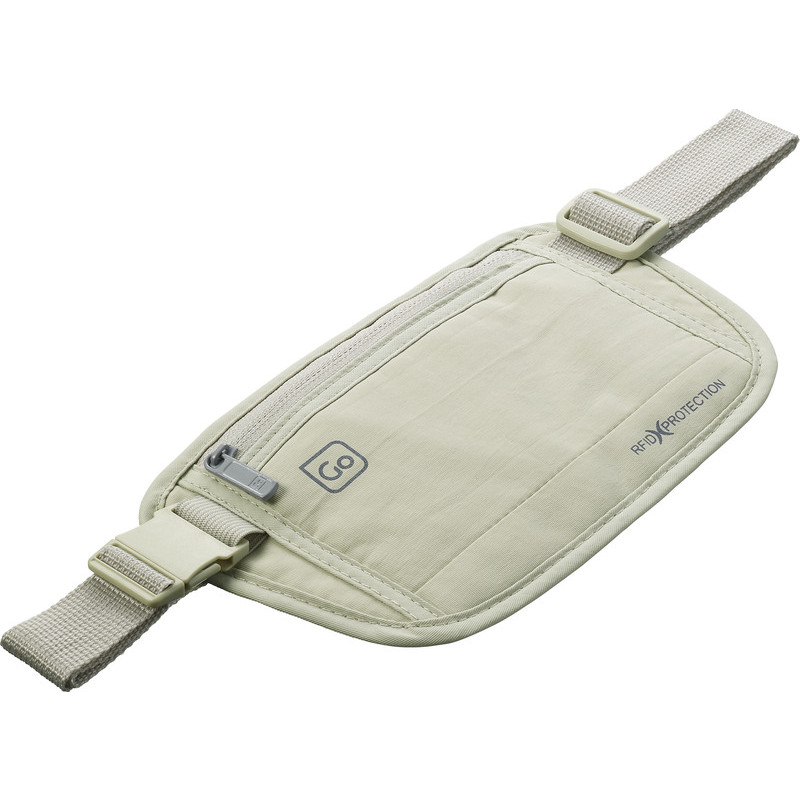 Potovalna denarnica za okoli pasu z RFID zaščito Go Travel je lahka ter udobna potovalna denarnica, namenjena nošenju dokumentov in denarja okoli pasu. Denarnica vam nudi revolucionarno RFID zaščito, kar pomeni da varuje vaše kartice, potne liste pred razmagnetenjem in morebitno krajo podatkov iz RFID čipa na daljavo. Denarnico lahko nosite pod ali nad oblačili.