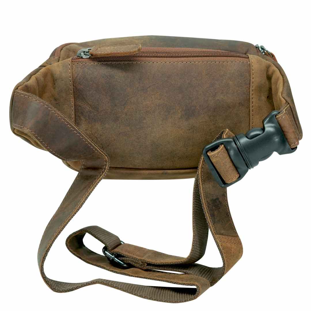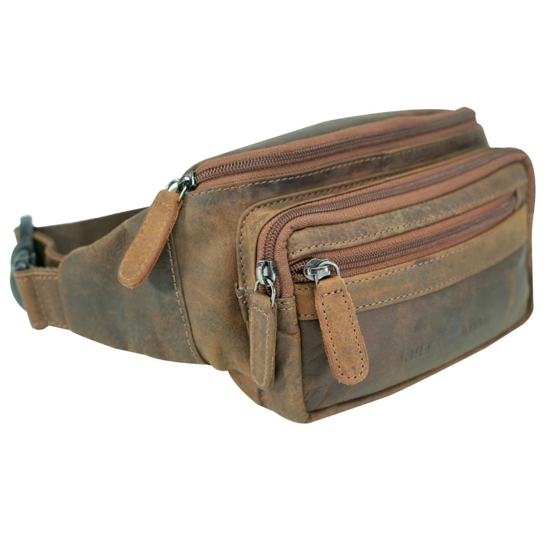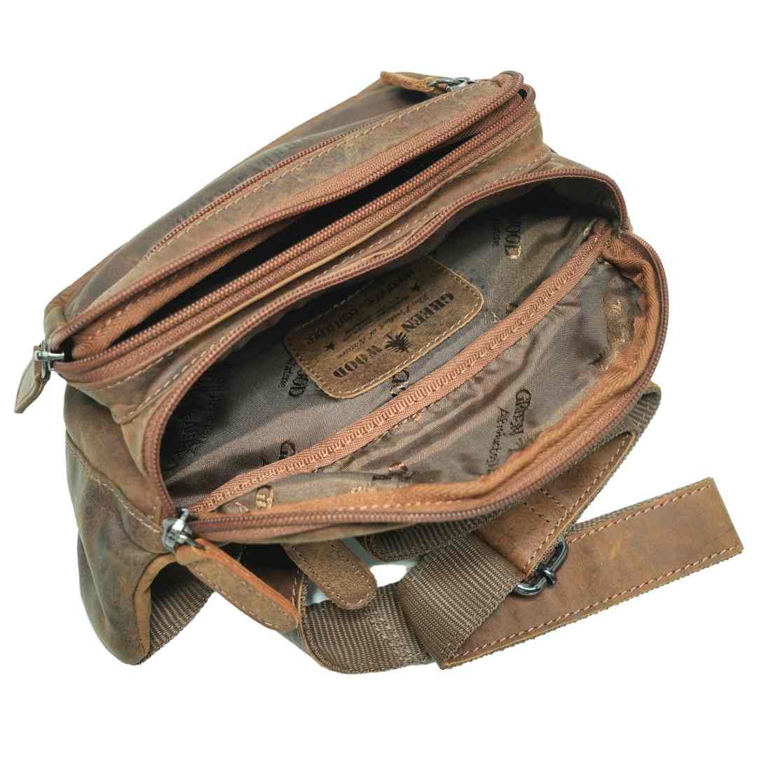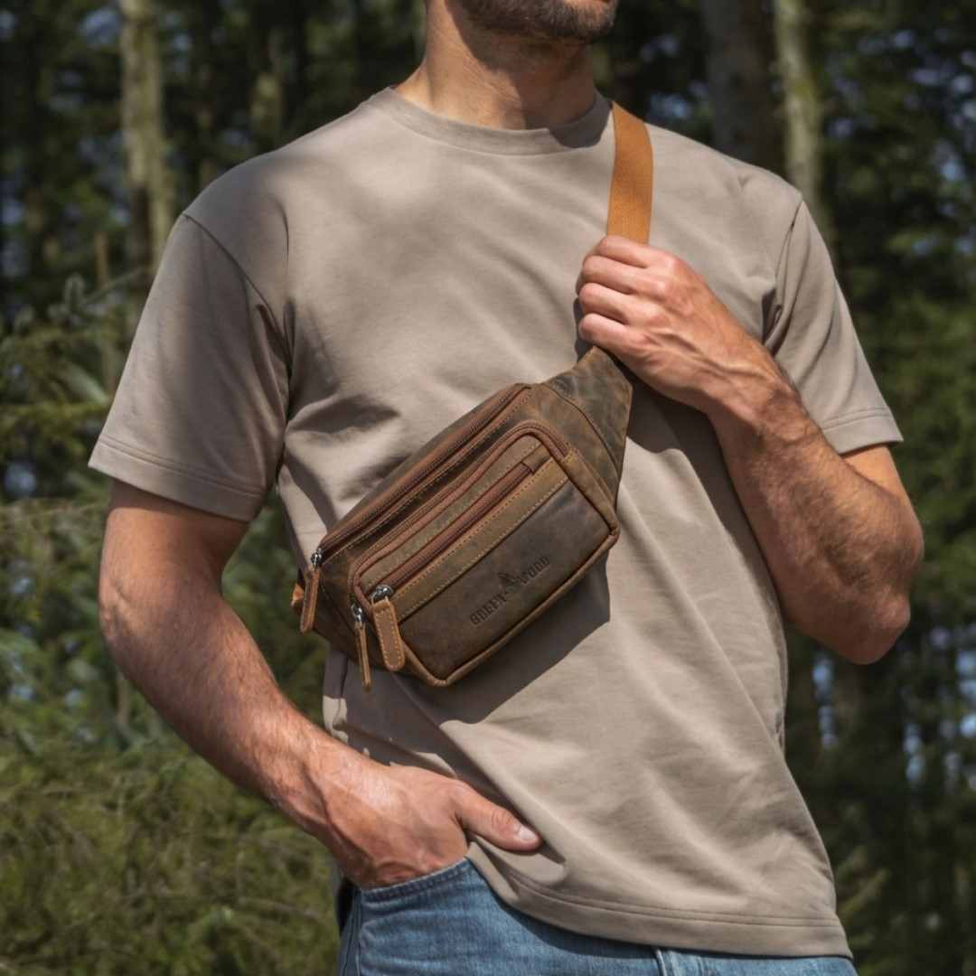 Kožna torbica oko struka Green Wood Tian izdržljiva kožna torba za struk dizajnirana za one koji žele praktičnost, sigurnost i bezvremenski vintage izgled, sve u jednom. Izrađena je od visokokvalitetne kože koja će izdržati habanje i s vremenom će razviti još ljepši karakter. Njena pametno dizajnirana unutrašnjost omogućuje iznimnu organizaciju: glavni pretinac s patentnim zatvaračem nudi prostor za sve vaše potrepštine, dok dva prednja džepa omogućuju brz pristup manjim predmetima. Tu je i sigurnosni stražnji džep, savršen za dokumente ili novčanik. Podesivi remen osigurava da torba udobno sjedi oko struka ili preko ramena, što je čini savršenom za putovanja, šetnje, izlete ili gradske poslove. Kožna torba za struk je torba koja kombinira funkcionalnost, stil i pouzdanost - idealan suputnik za svaki dan.