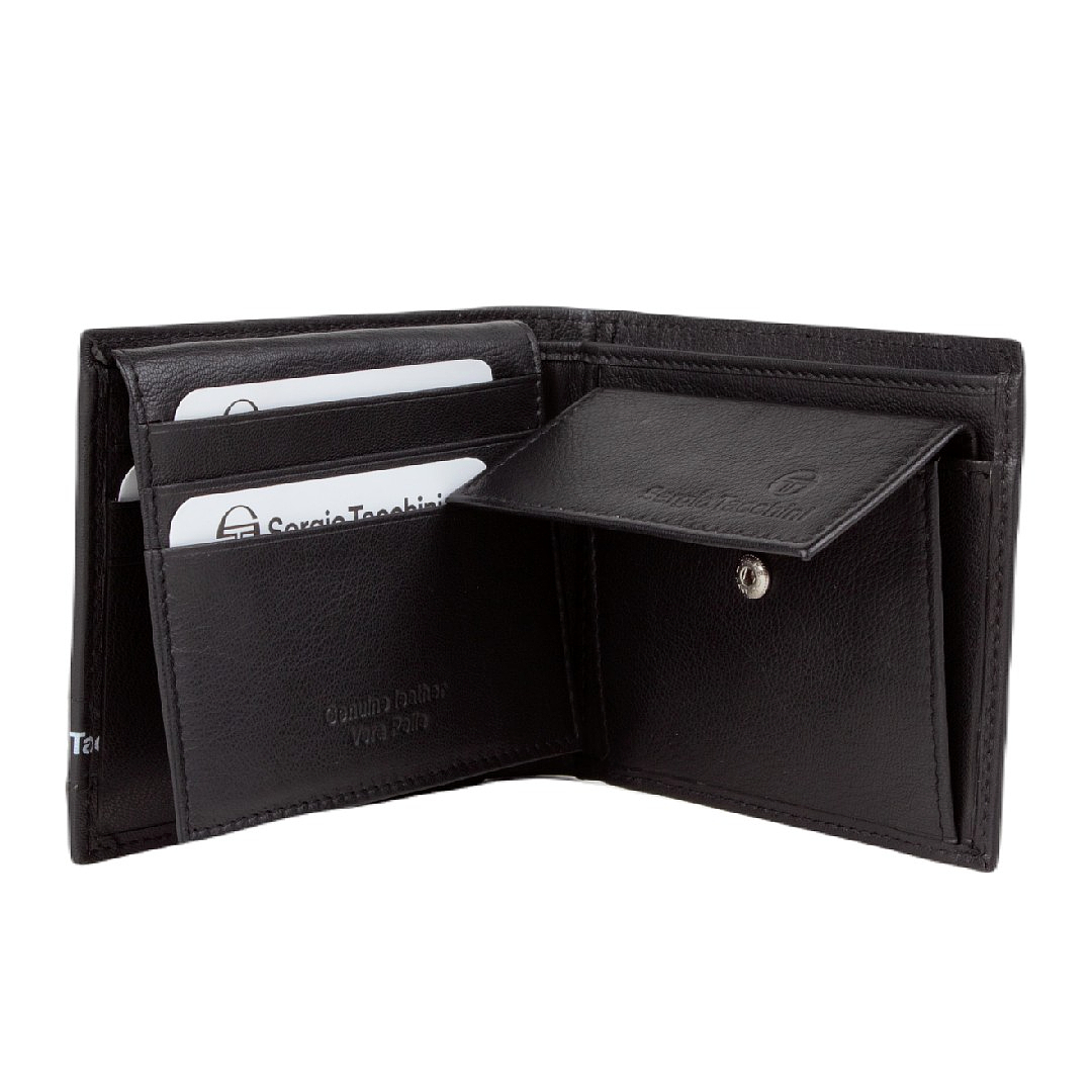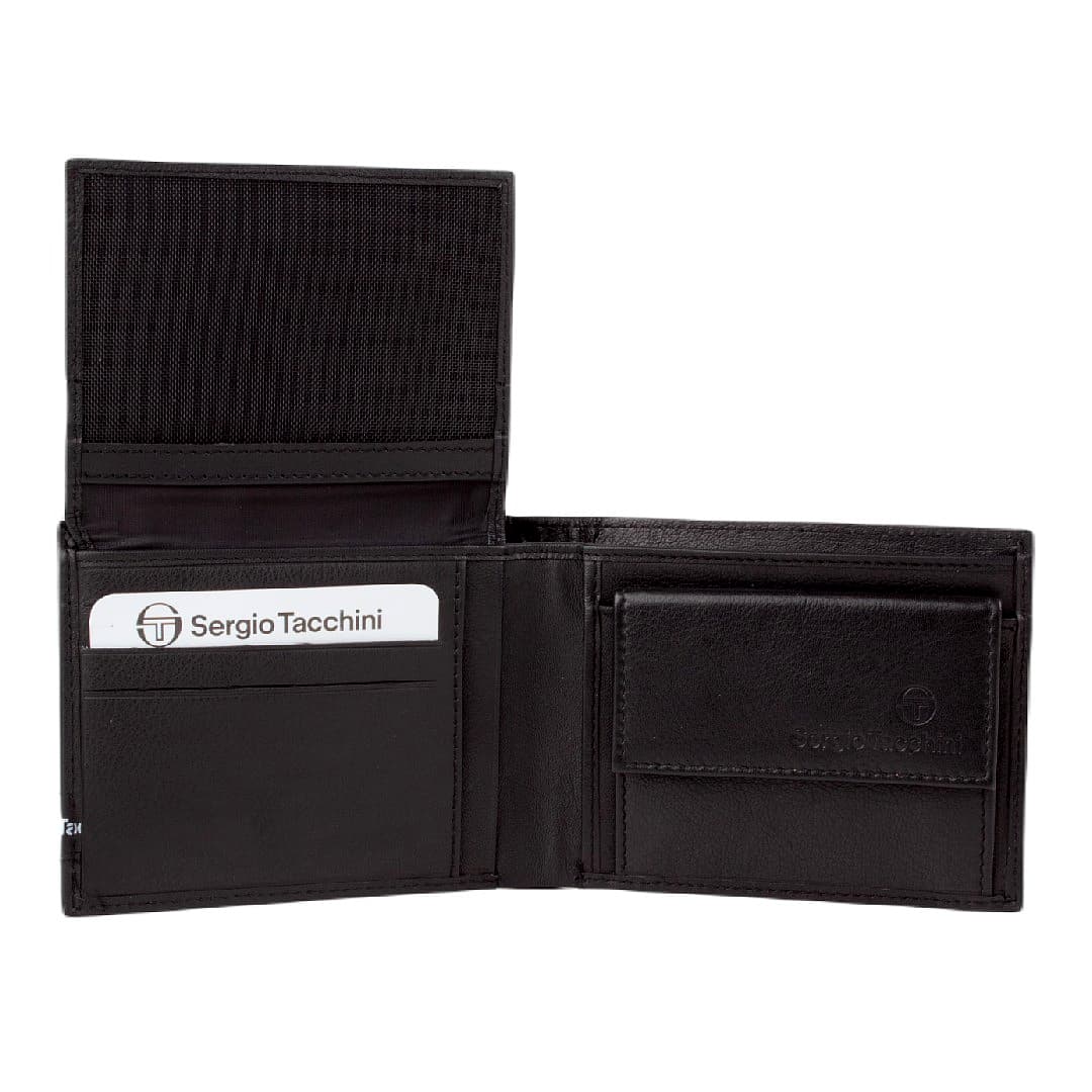 Kožni muški novčanik Sergio Tacchini Oscar izrađena je od fine i kvalitetne kože. Novčanik je elegantnog i modernog izgleda, prednju stranu krasi natpis Sergio Tacchini koji savršeno uljepšava izgled novčanika. Unutar novčanika ima dovoljno pretinaca za sve vaše kartice, dokumente i novac.