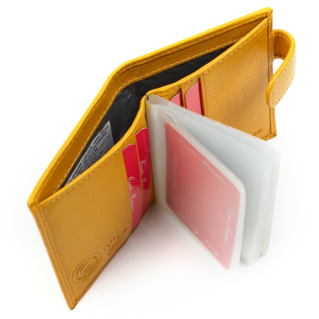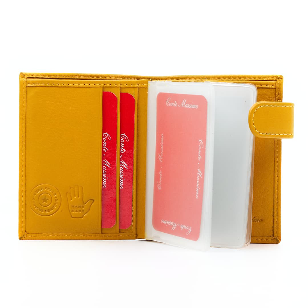 Kožni novčanik za kreditne kartice Conte Massimo Holder izrađena je od prave kože. Kožni novčanik namijenjen je svima koji žele sigurno spremiti svoje kartice i zaštititi ih od oštećenja. Unutar kožnog novčanika, međutim, ima dovoljno mjesta za sve vaše kartice i novčanice.