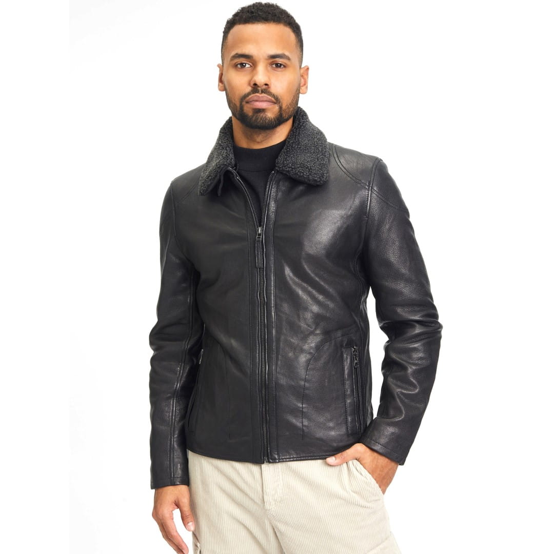 Muška kožna jakna MAURITIUS Grover je izuzetno udobna, topla, mekana, klasično krojena muška jakna od kvalitetne ovčje kože. Jakna ima klasičnu, odvojivu krznenu kragnu koja će vas grijati u hladnim danima. Viječni model kožne jakne otpuštenog kroja s naglašenim dodacima koji stvara ikonski izgled samouvjerenog i modernog muškarca u sportskoj i elegantnoj odjeći. Kožna jakna za muškarca koji uvijek želi biti u trendu. Atraktivna, kultna jakna od prave kože koja nikad ne izlazi iz mode i pristaje stvarno svakom muškarcu.