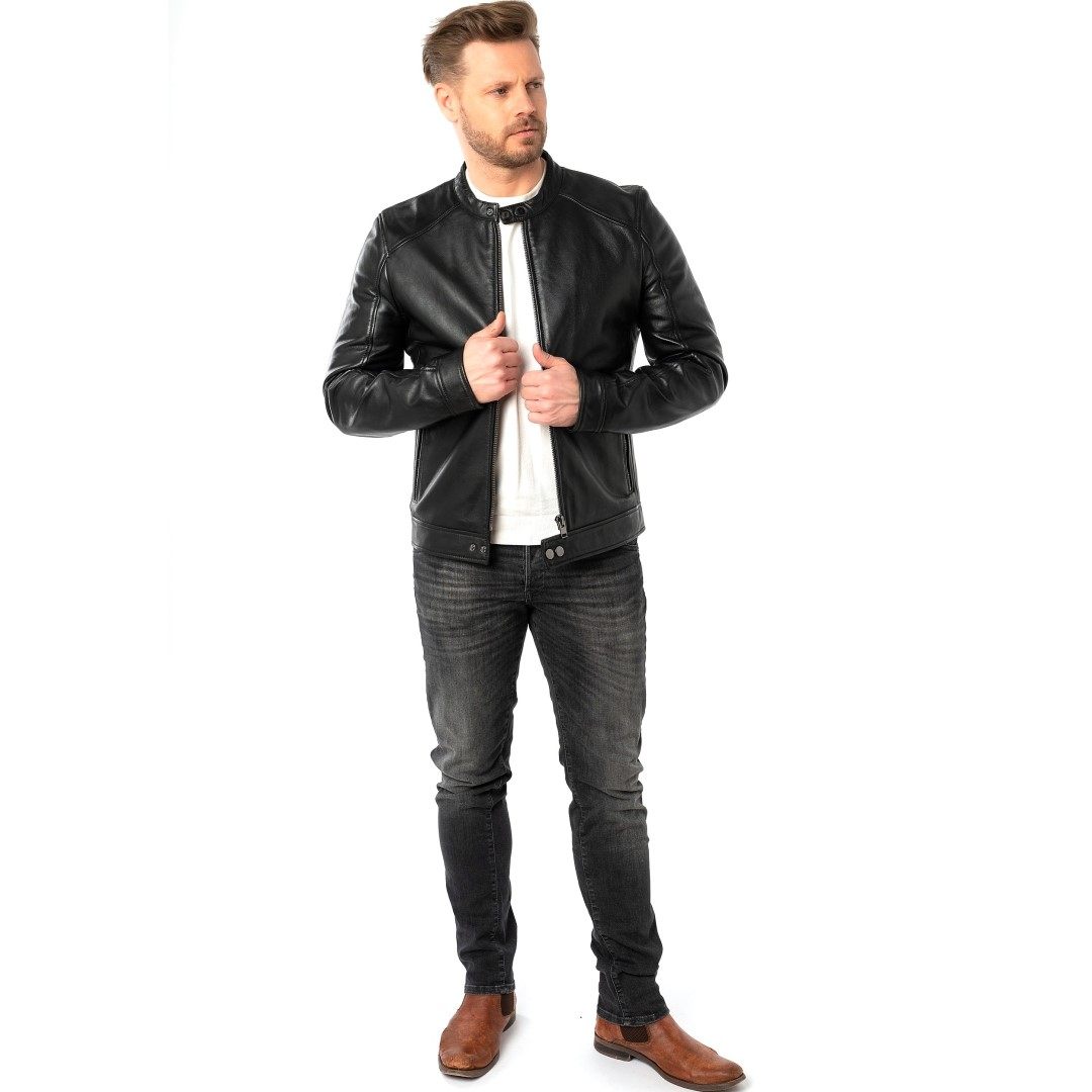 Muška kožna jakna MAURITIUS Tibor pravi je izbor za samouvjerene muškarce koji se žele istaknuti bezvremenskim stilom i vrhunskom kvalitetom! Izrađena je od prave kože, koja je biljno štavljena za prirodan izgled i iznimnu mekoću, modernog slim fit kroja koji potpuno prianja uz tijelo. Izdržljivi metalni patentni zatvarači, precizno oblikovani šavovi i moderan dizajn osiguravaju da će ovaj komad odjeće postati vaš pouzdani pratitelj kroz mnoga godišnja doba. Jakna je idealna za muškarce koji žele jednostavan, ali snažan modni komad prikladan za razne prigode. Savršeno se slaže s trapericama ili elegantnijim hlačama, što je čini odličnim izborom i za gradsku ulicu i za večernji izlazak.