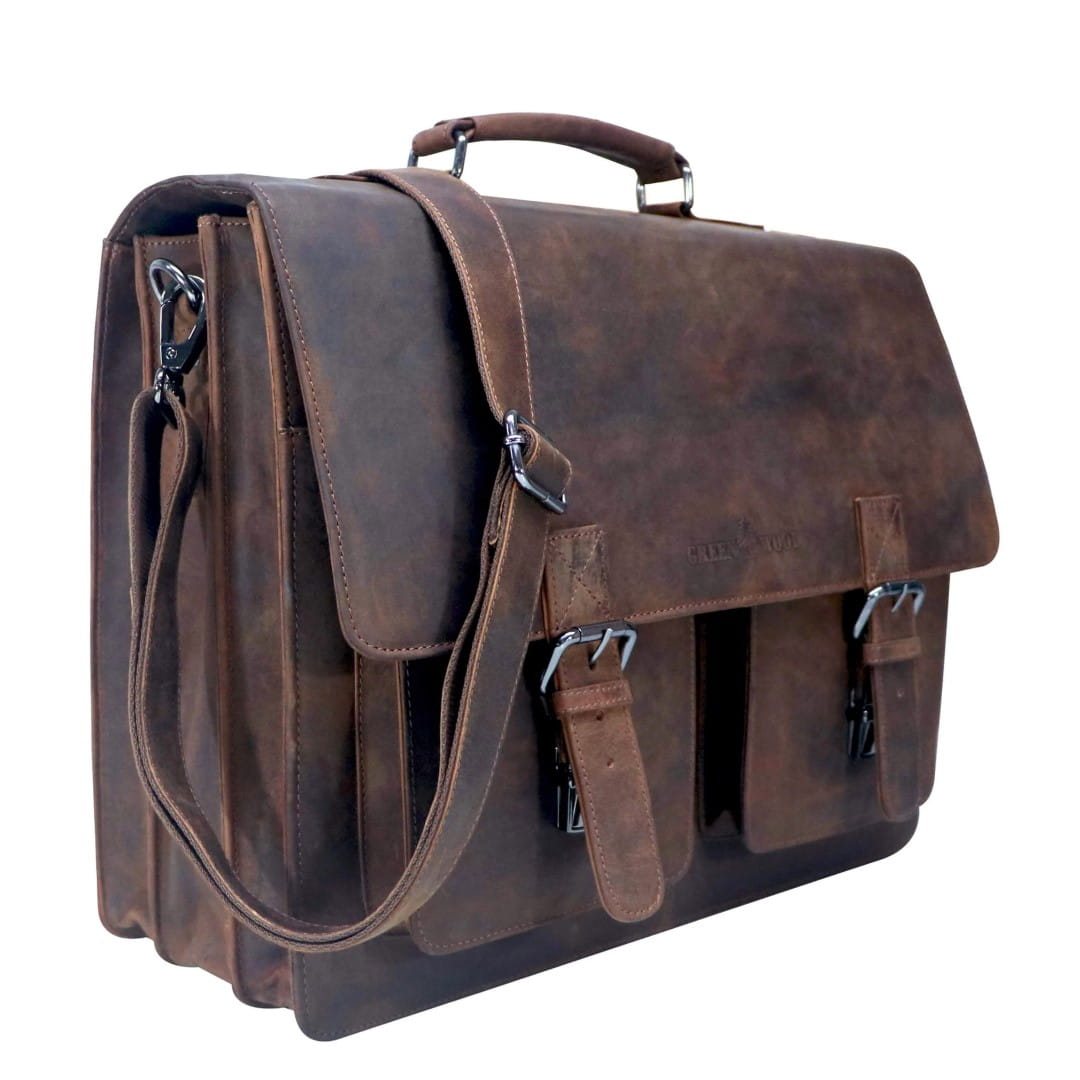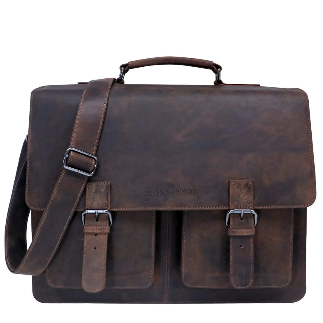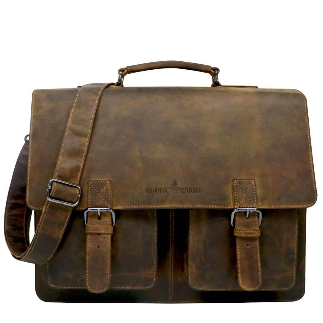 Poslovna torba kožna Green Wood Vinty najpopularnija je moderna aktovka izrađena od visokokvalitetne prave kože. Impresionira svojim "rabljenim izgledom", a unutrašnjost torbe doista je savršeno organizirana kao pravi mini ured za modernog poslovnog čovjeka. Torba se sastoji od nekoliko glavnih pretinaca i unutarnjih džepova s patentnim zatvaračem, u koje možete pohraniti dokumenate, poslovne mape, knjige, kalkulator ili druge sitnice. Također uključuje podstavljen prostor za prijenosno računalo od 15,6¨, koji je poprečnim kožnim remenom dodatno zaštićen od udaraca ili ispadanja sadržaja. Jedan od brojnih pretinaca služi kao mjesto za olovke, posjetnice, novčanik i mobitel. Poklopac torbe se elegantno i praktično zatvara s dvije retro kopče. Ima široku, fleksibilnu kožnu naramenicu s protukliznom podlogom. Svaka torba je potpuno individualna, nejednaki uzorak i eventualna istrošenost boje nisu nedostaci, već jamstvo autentičnosti. Kožne poslovne torbe namijenjene su svima koji vole visokokvalitetne ručno rađene proizvode iznimno dugog vijeka trajanja.