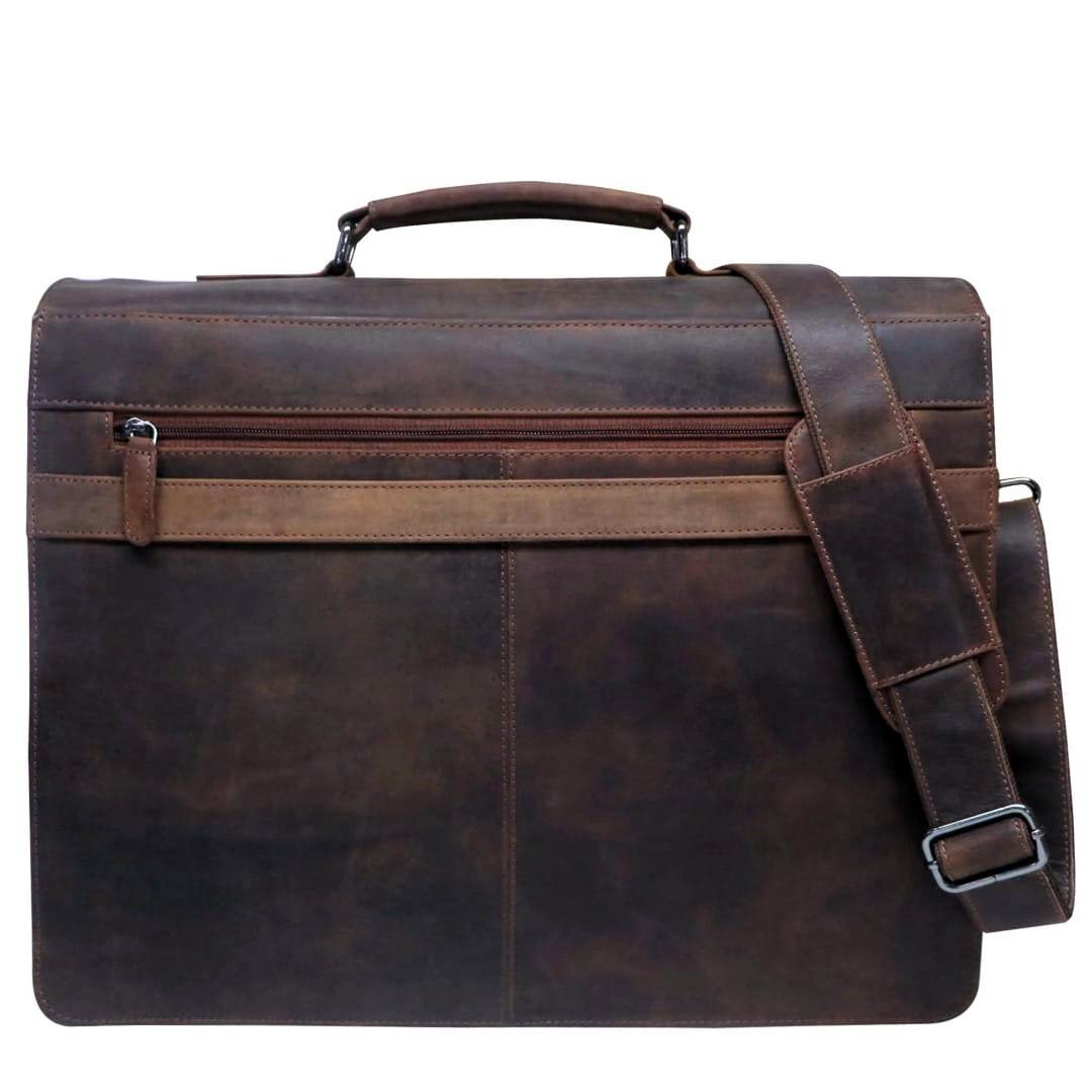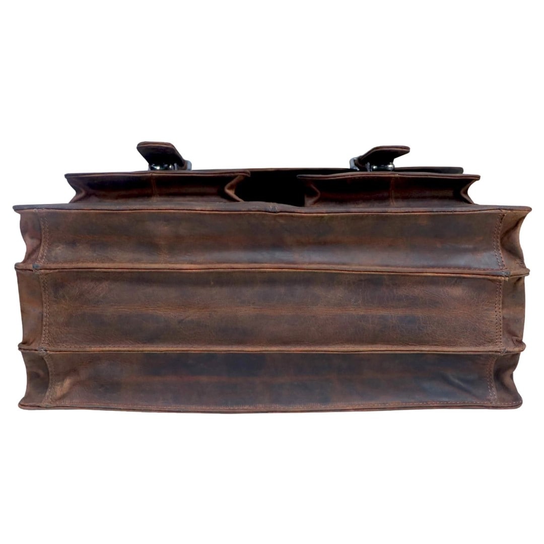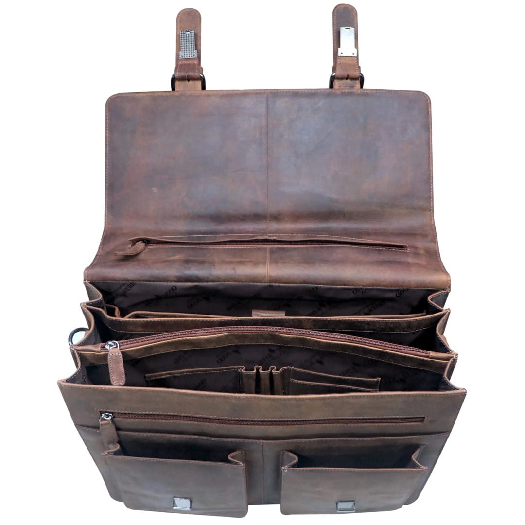 Poslovna torba kožna Green Wood Vinty najpopularnija je moderna aktovka izrađena od visokokvalitetne prave kože. Impresionira svojim "rabljenim izgledom", a unutrašnjost torbe doista je savršeno organizirana kao pravi mini ured za modernog poslovnog čovjeka. Torba se sastoji od nekoliko glavnih pretinaca i unutarnjih džepova s patentnim zatvaračem, u koje možete pohraniti dokumenate, poslovne mape, knjige, kalkulator ili druge sitnice. Također uključuje podstavljen prostor za prijenosno računalo od 15,6¨, koji je poprečnim kožnim remenom dodatno zaštićen od udaraca ili ispadanja sadržaja. Jedan od brojnih pretinaca služi kao mjesto za olovke, posjetnice, novčanik i mobitel. Poklopac torbe se elegantno i praktično zatvara s dvije retro kopče. Ima široku, fleksibilnu kožnu naramenicu s protukliznom podlogom. Svaka torba je potpuno individualna, nejednaki uzorak i eventualna istrošenost boje nisu nedostaci, već jamstvo autentičnosti. Kožne poslovne torbe namijenjene su svima koji vole visokokvalitetne ručno rađene proizvode iznimno dugog vijeka trajanja.