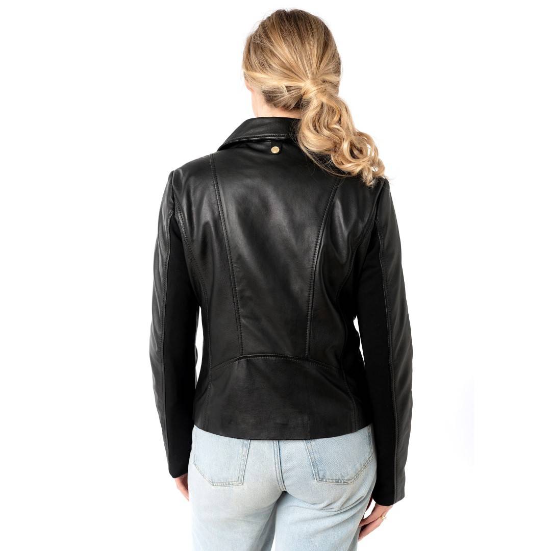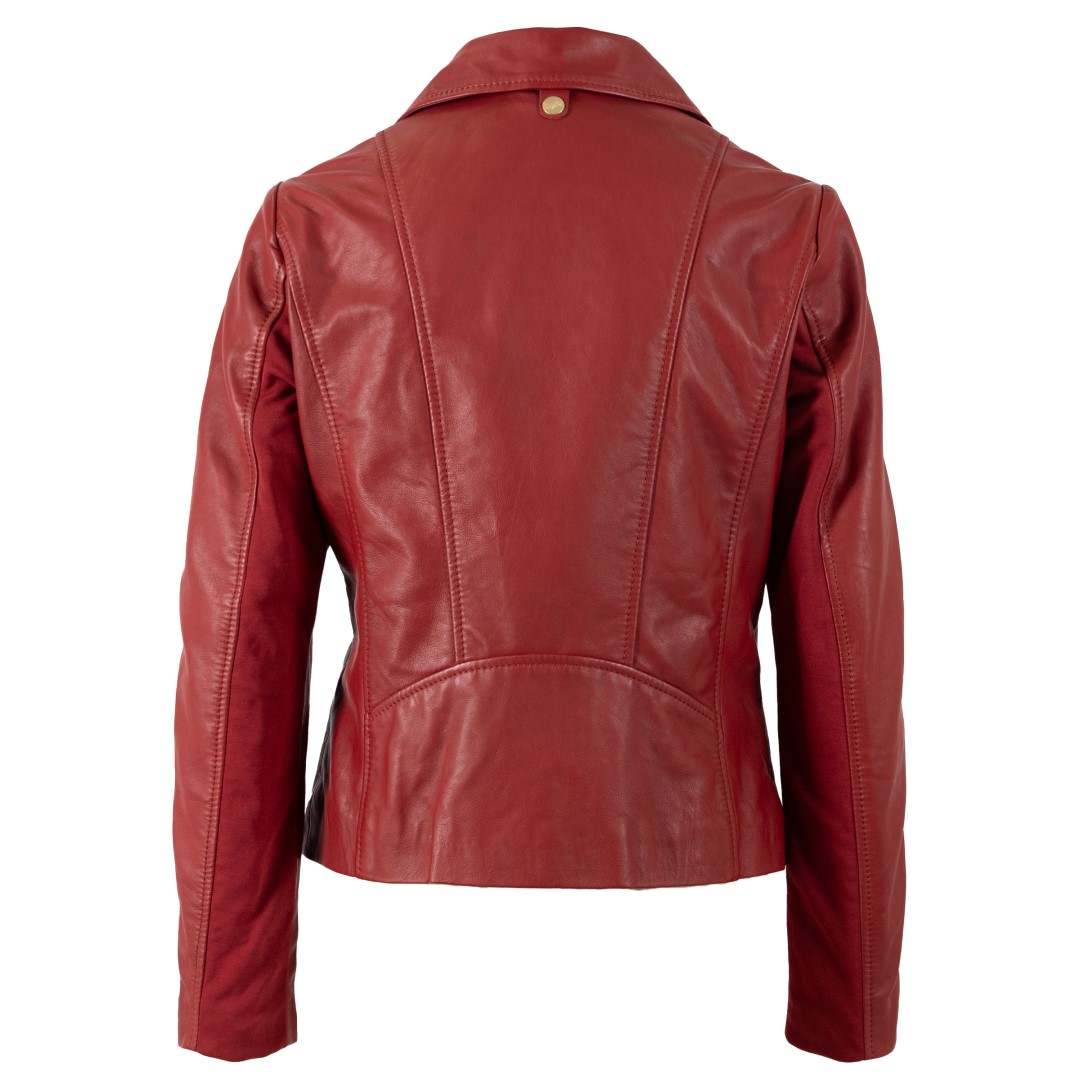 Ženska kožna jakna MAURITIUS Fylli savršen je izbor za žene koje se kunu u udobnost, kvalitetu i ženstven izgled. Ovaj model jakne očarava iznimnom mekoćom prirodne kože koja se ugodno prilagođava tijelu i osigurava maksimalnu udobnost. Zlatni metalni patentni zatvarači i ukrasni dodaci stvaraju luksuzan kontrast sa strastvenom crvenom ili odvažnom crnom bojom te osiguravaju da se jakna ističe u svakoj modernoj odjevnoj kombinaciji. Poseban naglasak su rastezljivi umeci na stražnjoj strani rukava za bolju pokretljivost i jednostavno nošenje. Klasični kroj osigurava ženstvenu siluetu koja se divno slaže i s dnevnim i s večernjim kombinacijama. Neka vaša nova kožna jakna bude simbol samopouzdanja, ženstvenosti i bezvremenske mode.
