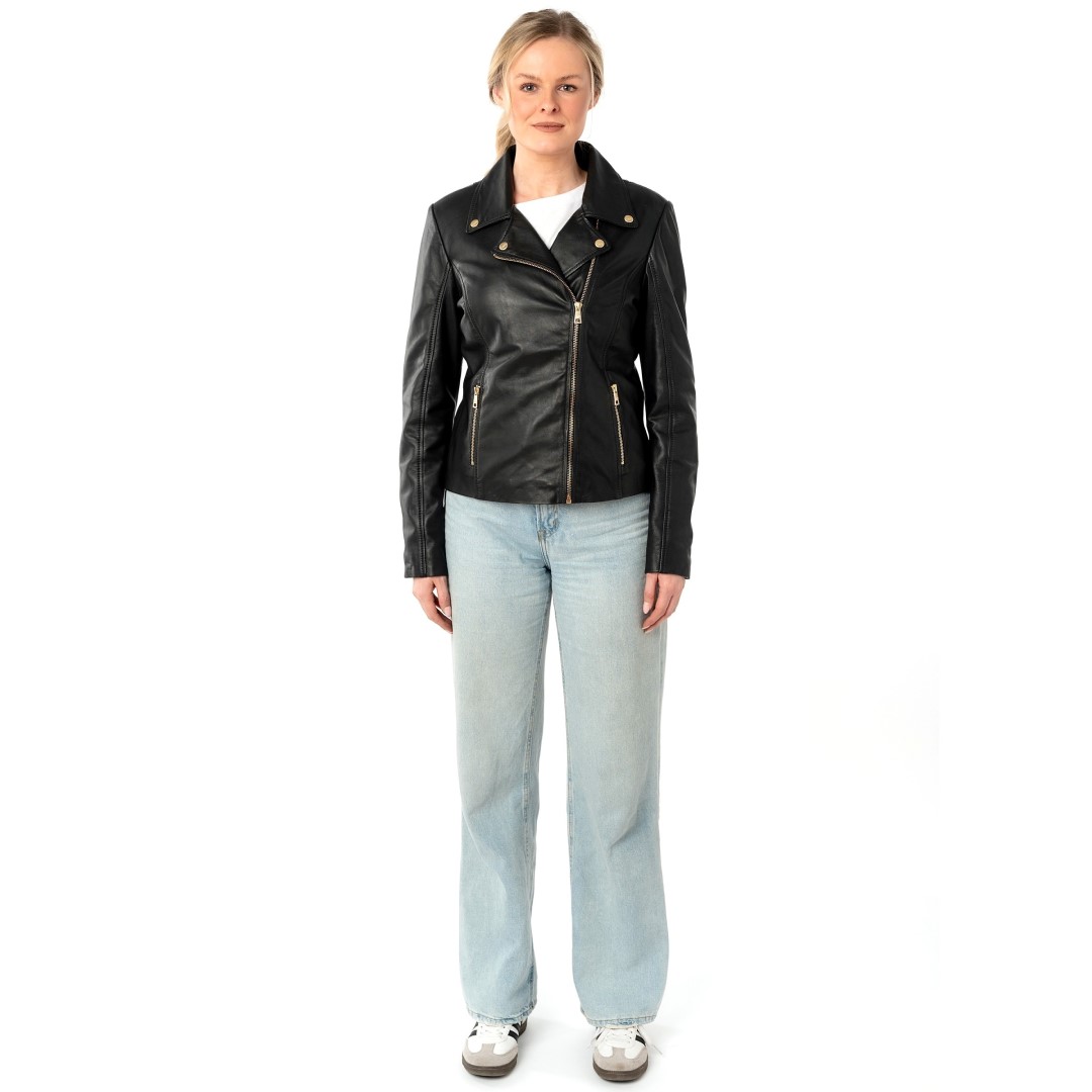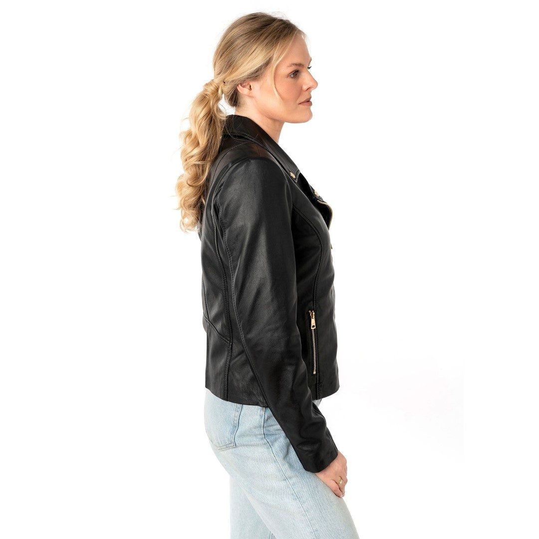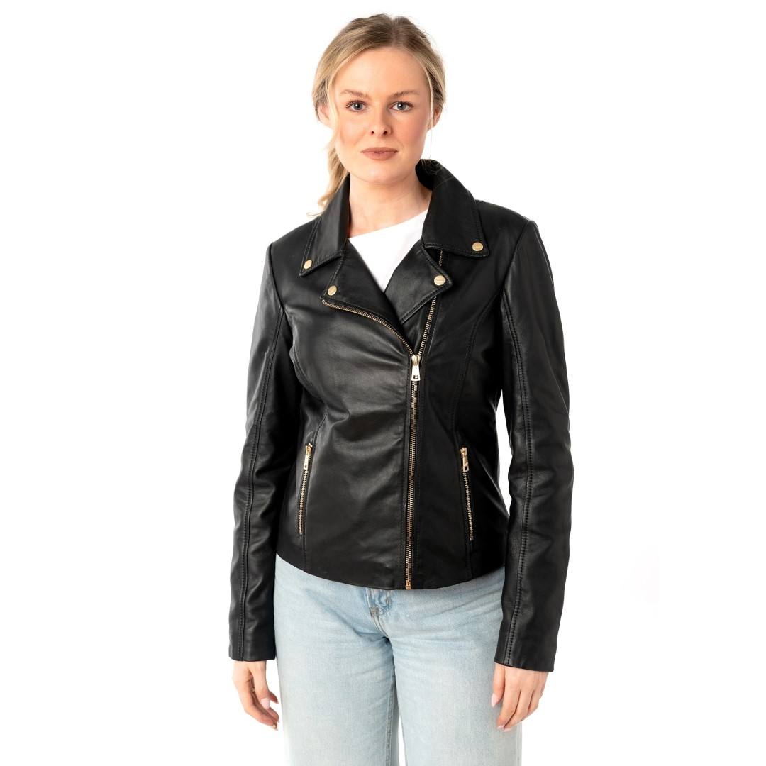 Ženska kožna jakna MAURITIUS Fylli savršen je izbor za žene koje se kunu u udobnost, kvalitetu i ženstven izgled. Ovaj model jakne očarava iznimnom mekoćom prirodne kože koja se ugodno prilagođava tijelu i osigurava maksimalnu udobnost. Zlatni metalni pat