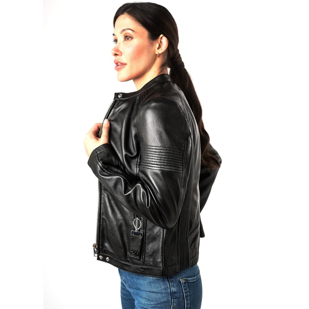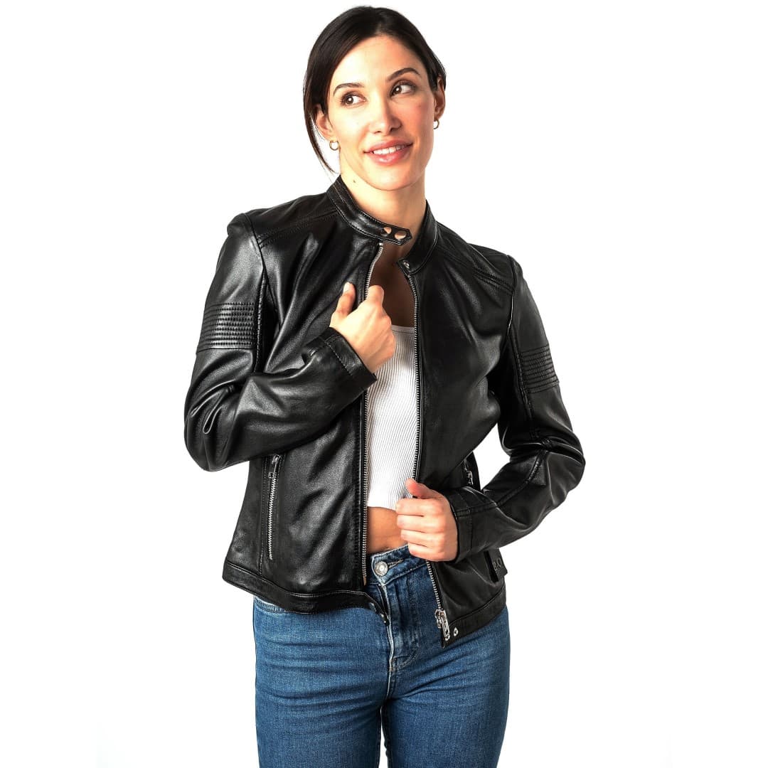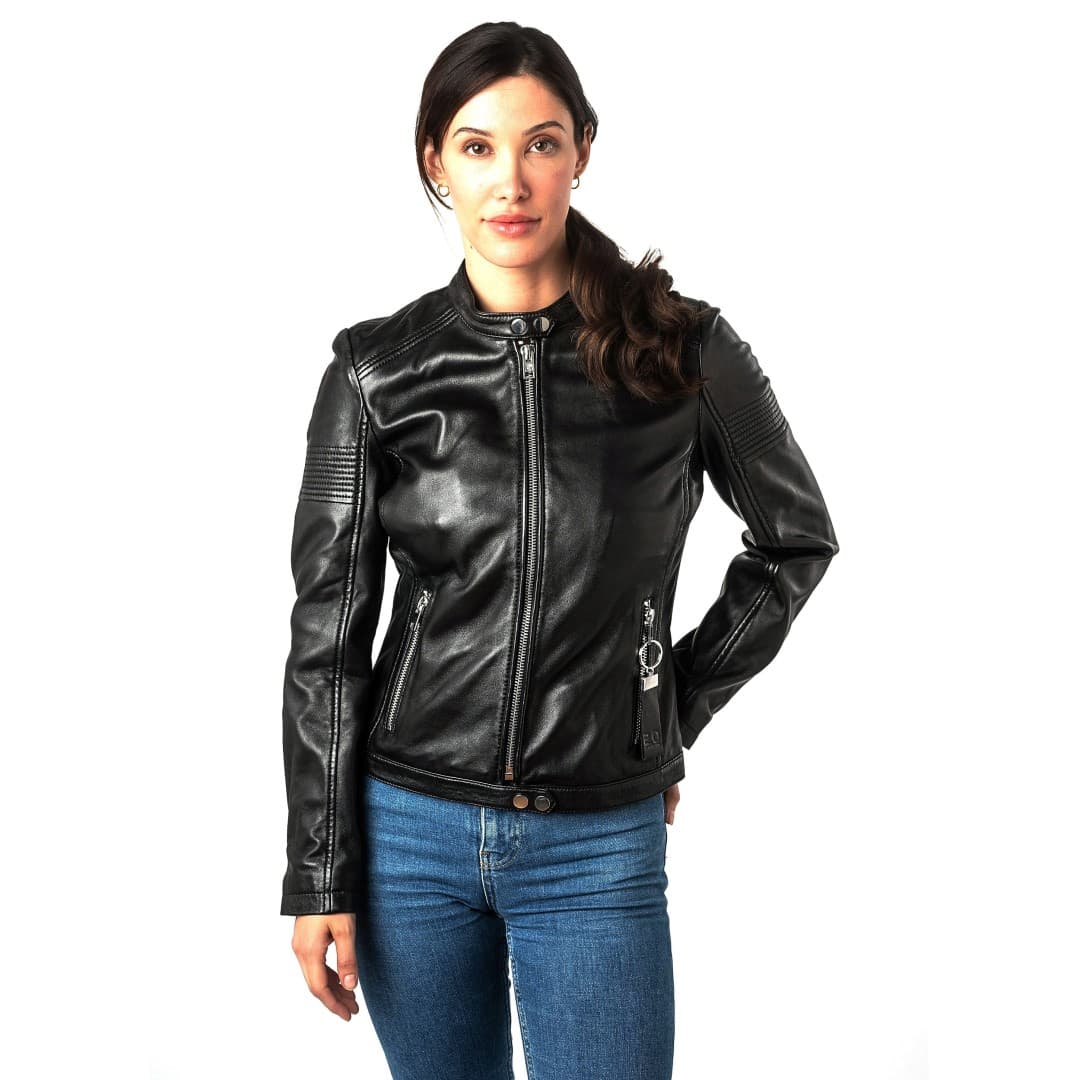 Ženska kožna jakna MAURITIUS Wima je elegantna i trendi jakna koja spaja bezvremenski dizajn i udobnost. Izrađena od kvalitetne kože, savršeno pristaje uz uski kroj. Zakopčavanje na patentni zatvarač i ovratnik koji stoji na vis dodaju moderan štih, dok detalji na rukavima naglašavaju dinamičan izgled. Bočni džepovi osiguravaju praktičnost, a svestrani dizajn omogućuje kombiniranje uz ležerne i sofisticirane stilove. Idealan izbor za svakoga tko traži kvalitetu, stil i udobnost u jednom.