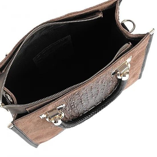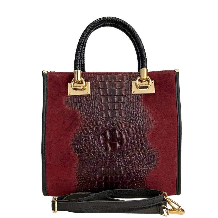 Ženska kožna modna torba Optimist Cielo spaja bezvremensku sofisticiranost, luksuz i odvažnu modnu notu. Izrađena je od prirodne kravlje kože u kombinaciji s brušenom kožom i sjajnim izgledom krokodilske kože, što joj daje iznimnu teksturu i istaknut izgled. Ručno izrađena u Firenci u Italiji, predstavlja savršenu ravnotežu između kvalitete, stila i funkcionalnosti. Svojim kompaktnim oblikom i metalnim dodacima zlatne boje odiše prestižem i ženstvenim samopouzdanjem. Unutrašnjost torbe je prostrana i praktična, s nekoliko pretinaca za jednostavnu organizaciju svakodnevnih potrepština. Dvije kratke ručke omogućuju udoban hvat, dok odvojivi remen za rame pruža fleksibilnost pri nošenju - preko ramena ili dijagonalno. Dostupna u tri sofisticirane boje - bež, crnoj i bordo crvenoj - Optimist torba savršen je izbor za poslovne sastanke, gradske poslove ili večernje prigode. Savršena za svaki modni stil kada se želite istaknuti i ostaviti dubok dojam.