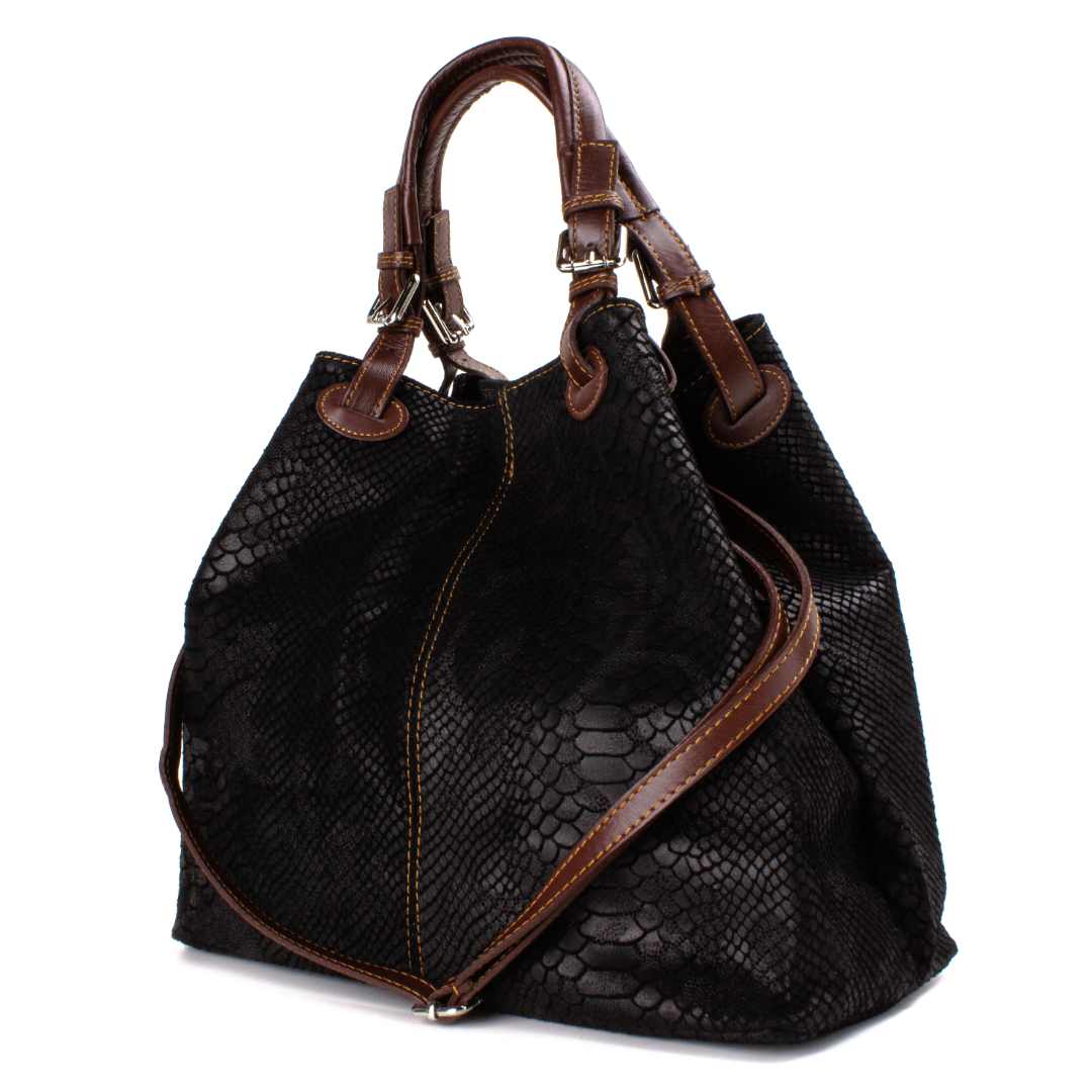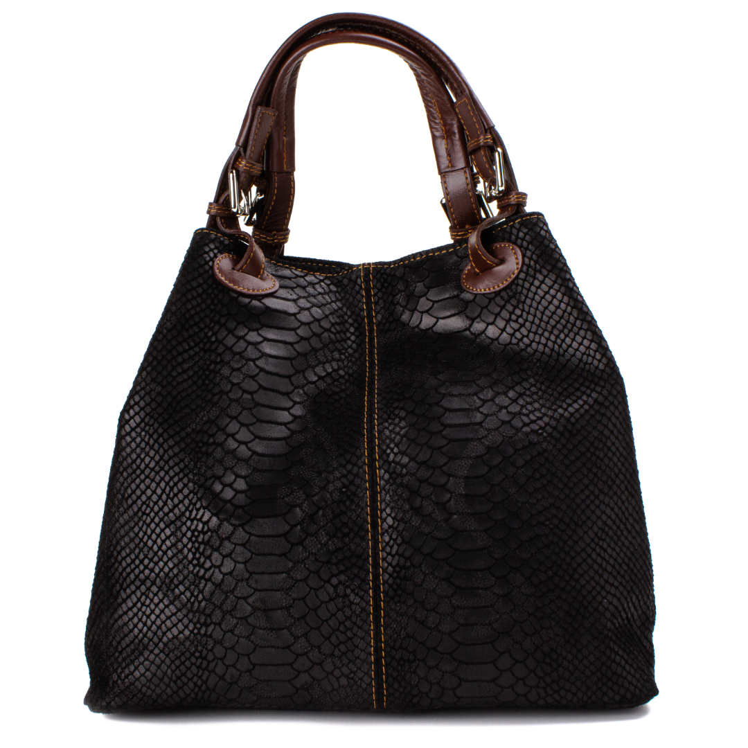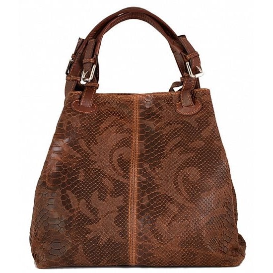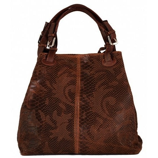 Ženska kožna modna torba Optimist Isla pogodna je za sva godišnja doba i za svaku ženu koja voli biti lijepo uređena i prati modne trendove. Izrađena je od najfinije goveđe kože, sa prešanim "trendy modernim" uzorkom u obliku zmijske ljuske.