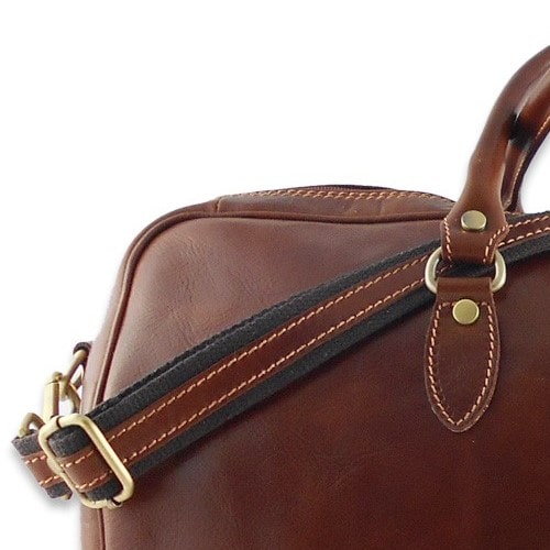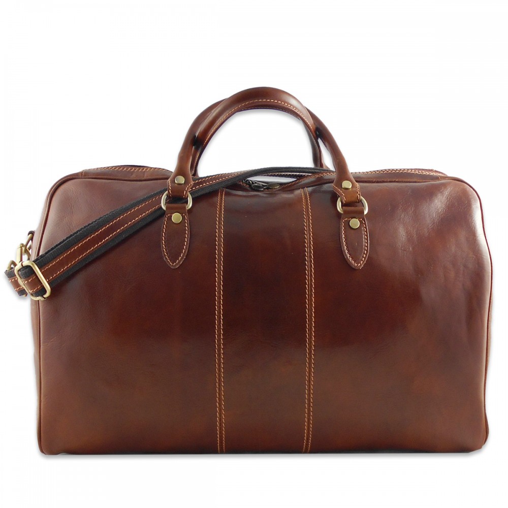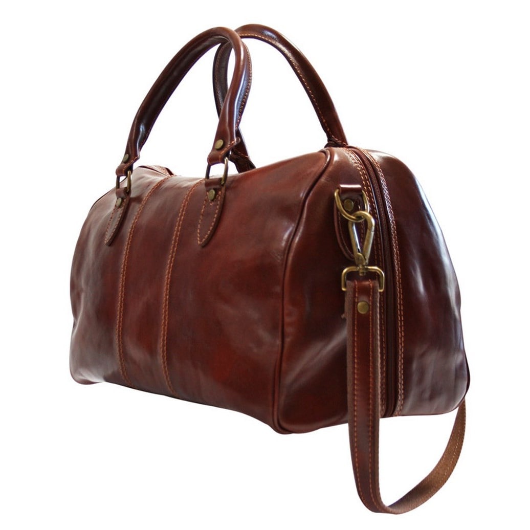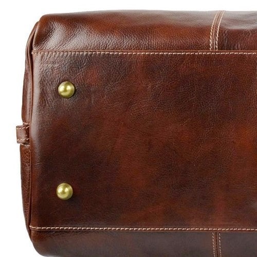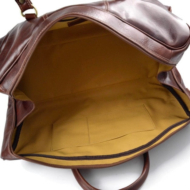 Kožna putna torba Optimist Rock elegantnog rustikalnog izgleda ručno rađena od najbolje, biljno preplanule goveđe kože. Sadrži jedan veliki pretinac s bočnim džepom s patentnim zatvaračem. S jakim ručkama može se nositi u ruci ili s podesivim remenom preko ramena. Dno torbe zaštićeno je mesinganim nogama. Izdržljiva torba odgovara dimenzijama kabinske prtljage i idealna je za vikend izvan grada, kao i za posao ili posjet teretani.