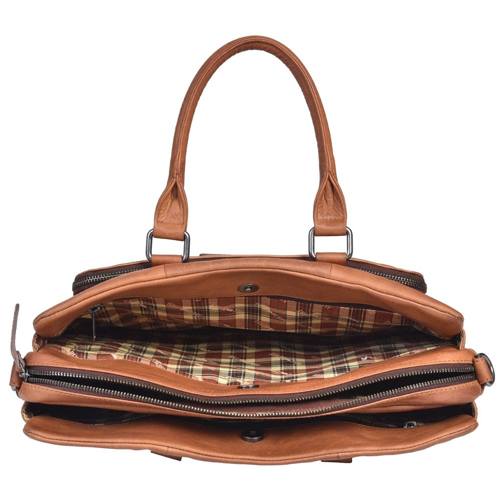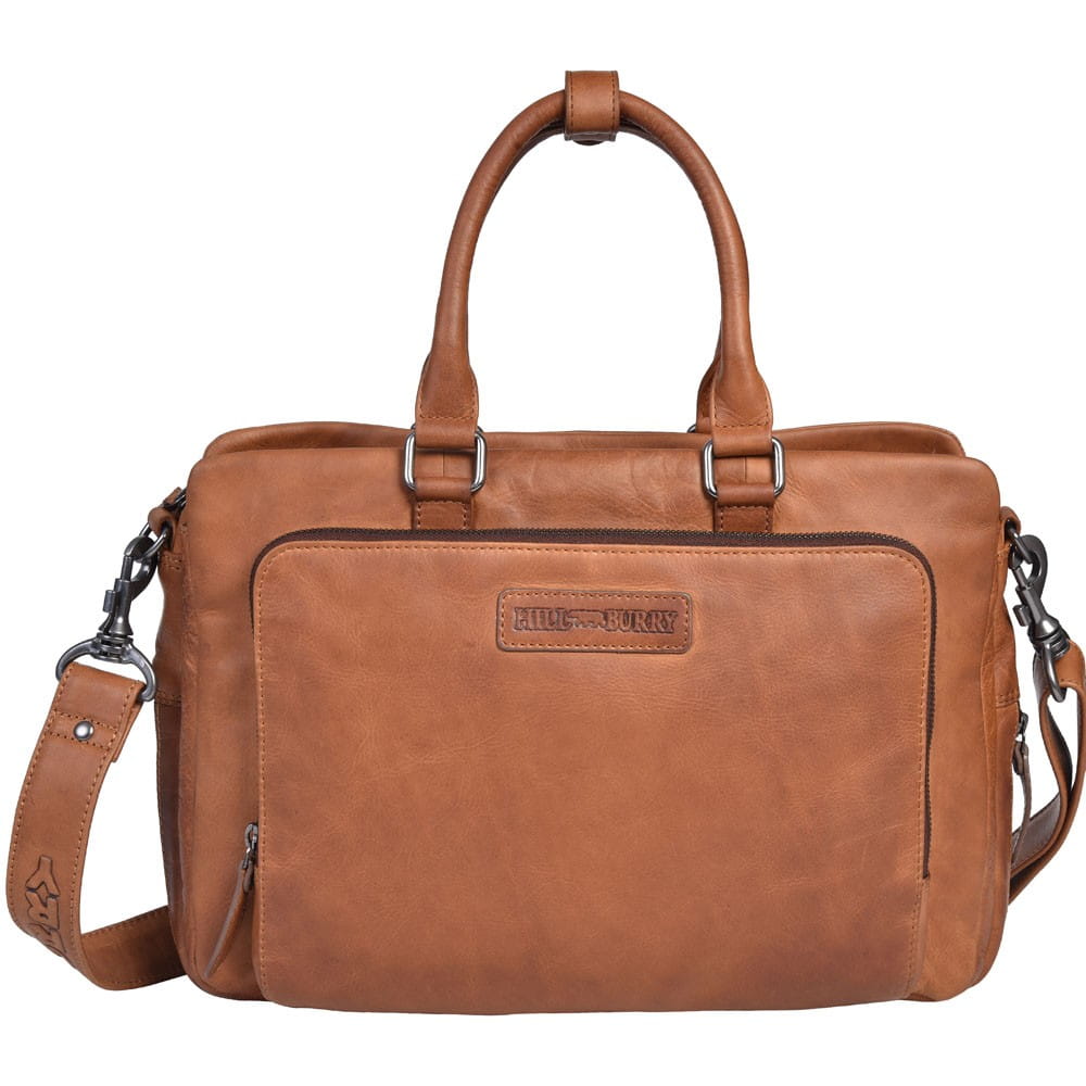 Kožna poslovna torba Hill Burry Exclusive vrhunski je ručno rađen proizvod iznimno dugog vijeka trajanja. Izrađena od najfinije goveđe kože, unutrašnjost je u potpunosti obložena kvalitetnom tkaninom u retro stilu s Hillburryjevim potpisom. Torba se sastoji od tri glavna pretinca u koje možete pohraniti dokumente, poslovne mape, knjige, tablet ili prijenosno računalo od 13". Ima podstavljeni pretinac za prijenosno računalo s trakom koja štiti vaše računalo tijekom putovanja. Pretinac s patentnim zatvaračem na prednjoj strani služi kao mjesto za olovke, posjetnice, ključeve, novčanik i mobitel. Može se nositi u ruci s dvije jake kožne ručke ili preko ramena s podesivim remenom. Torba se može proširiti za 6 cm s patentni zatvarač na dnu, a prikladna je i kao mala vikend torba za dan ili dva. Torba dizajnirana za modernog muškarca sa snažnim karakterom i original stilom.