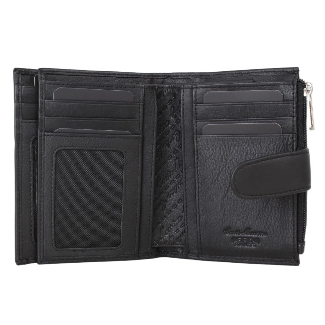 Ženski kožni novčanik Conte Massimo Morena nadilazi granice običnog modnog dodatka – osmišljen je kao pouzdan i praktičan novčanik za svaki dan. Njegov okomiti oblik s poprečnim kožnim sigurnosnim remenom ne ističe se samo dizajnom, već pruža dodatnu zaštitu sadržaja od neželjenog otvaranja i ispadanja. Izrađen od visokokvalitetne prirodne kože, novčanik oduševljava svojom mekom teksturom i izdržljivošću, koja je idealna za svakodnevnu upotrebu. Unutrašnjost skriva izuzetno prostran dizajn prilagođen potrebama suvremenog korisnika – čak 13 pretinaca za kartice, 9 pretinaca za dokumente, mjesta za fotografije i odvojeni pretinac za kovanice omogućuju pregledno i sigurno pohranjivanje svih važnih stvari. Ugrađena RFID zaštita učinkovito štiti vaše kartice od elektroničkog krađe podataka. Elegantna vanjština u širokom rasponu živopisnih ili klasičnih boja savršeno nadopunjuje svaki stil – od minimalističkog do odvažnijeg.