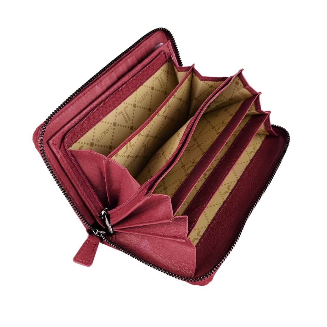 Ženski kožni novčanik Lancetti Lenni izniman je ženski kožni novčanik koji spaja eleganciju, funkcionalnost i kvalitetnu izradu. Izrađen je od vrhunske kože koja je mekana na dodir, a ujedno i izdržljiva, što osigurava dugi vijek trajanja novčanika. Dizajn novčanika je promišljen i estetski savršen. Prednjica je ukrašena diskretnim i stiliziranim logotipom marke i preciznim šavovima koji naglašavaju ručnu izradu i pažnju na detalje. Elegantna boja nadopunjuje cjelovit imidž novčanika koji se prilagođava različitim modnim stilovima. Unutrašnjost novčanika organizirana je tako da osigura maksimalnu funkcionalnost. Različiti džepovi za kartice, pretinac za novčanice i poseban pretinac za kovanice omogućuju urednost i preglednost. Kvalitetno uređenje interijera osigurava sigurno skladištenje novca, kartica i ostalih važnih dokumenata. Zatvaranje novčanika je sigurno i elegantno, pružajući dodatni osjećaj sigurnosti i povjerenja. odličan izbor za modernu ženu koja cijeni visoku kvalitetu, eleganciju i funkcionalnost. Ženski kožni novčanik ne samo da ispunjava očekivanja organizacije i sigurnosti, već i nadopunjuje vaš osobni stil.