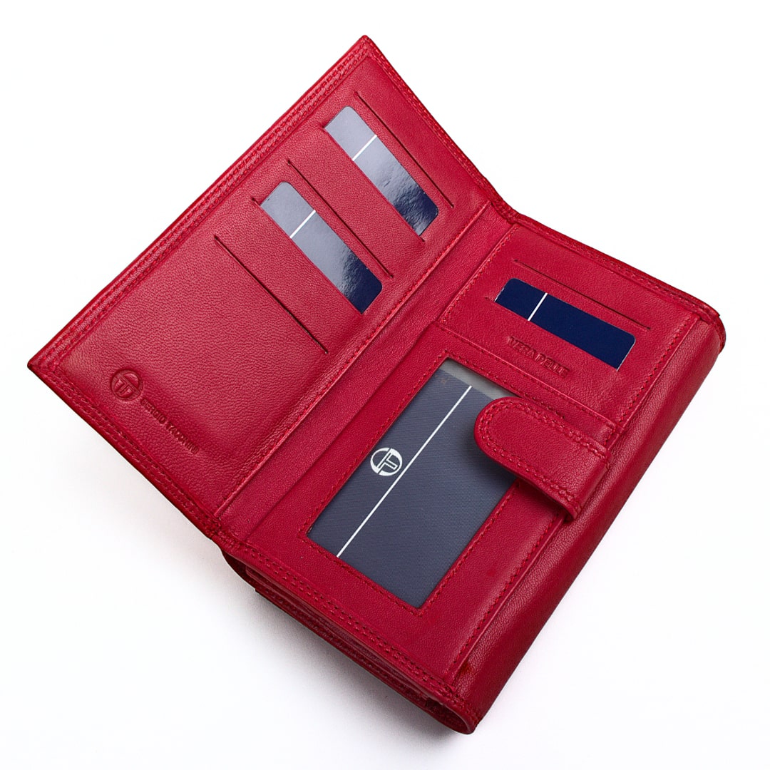 Ženski kožni novčanik Sergio Tacchini 9480-155 napravljen je od delikatne, meke kože, koja naglašava njegovu lakoću. Novčanik je vrlo prostoran i nudi puno prostora za pohranjivanje novčanica, kovanica, kartica, dokumenata i fotografija. Attitude you want to wear.
