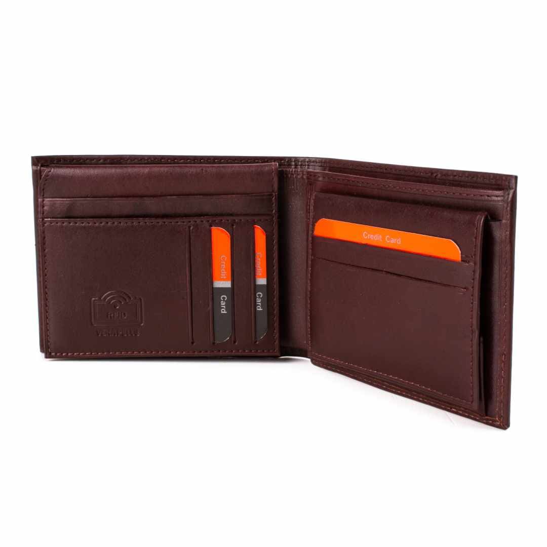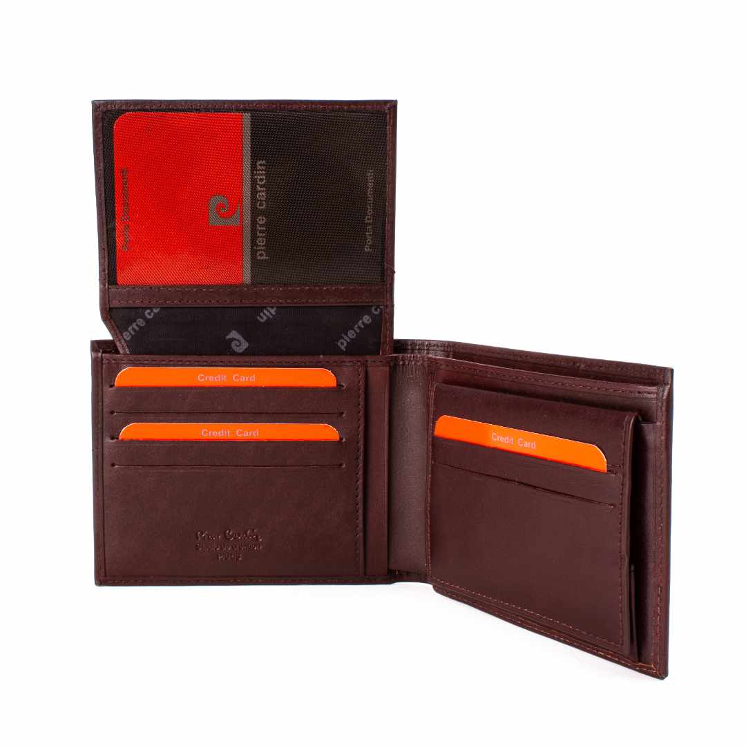 Moška usnjena denarnica Pierre Cardin Marco je izdelana iz kakovostnega mehkega usnja. Denarnica je zelo elegantnega in modnega videza. Vse vaše kartice bodo optimalno zaščitene pred krajo z najnovejšo tehnologijo RFID. Denarnica je zelo funkcionalna in ima brezčasen videz, odlikuje jo tudi njena prostorska razporeditev in vam ponuja ogromno prostora za kartice, dokumente, bankovce ter fotografije. Sprednjo stran krasi eleganten logo Pierre Cardin.
