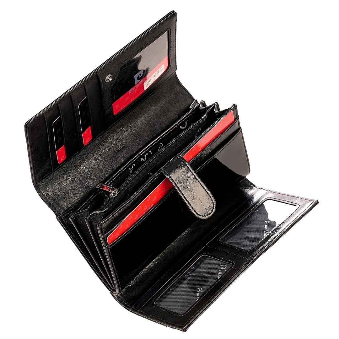 Ženska usnjena denarnica Pierre Cardin Arianna je popolna izbira za sodobno žensko, ki ceni prefinjenost in praktičnost. Izdelana iz kakovostnega pravega usnja z visokim sijajem, ki izžareva eleganco in prestiž. Na sprednji strani jo dopolnjuje kovinski logotip Pierre Cardin, ki poudari njen prepoznaven značaj. Ženska usnjena denarnica se zapira na gumb, v notranjosti pa skriva premišljeno razporeditev – več rež za kartice, prostore za bankovce ter žep na zadrgo za kovance. S tem zagotavlja odlično organizacijo in preglednost. Barva ji daje brezčasno klasiko, zaradi katere je popolna spremljevalka za vsak dan ali posebne priložnosti. Modni dodatek, ki združuje stil, kakovost in funkcionalnost v enem.