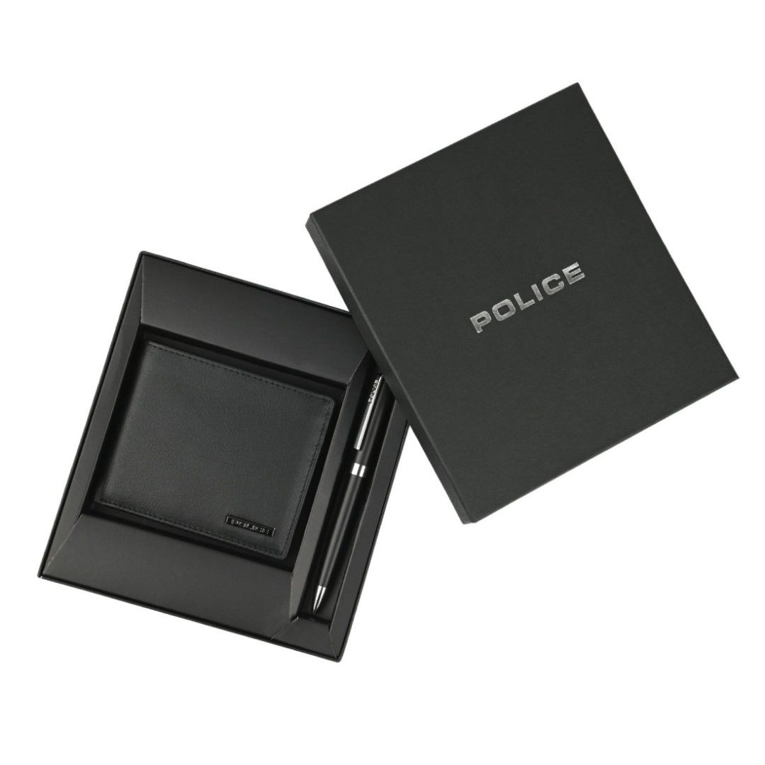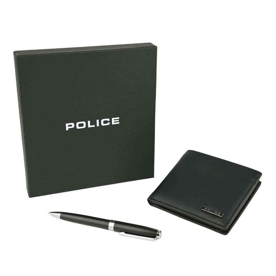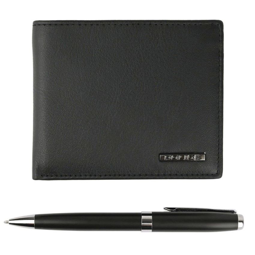 Usnjena moška denarnica Police Pen s kemičnim svinčnikom je popoln duo za urejen vsakdan v brezčasnem duhu italijanske elegance. Denarnica je skrbno izdelana iz naravnega usnja, idealne velikosti, saj je tanka in ne zajetna, ter se popolnoma prilega v vsak hlačni žep brez izboklin. Premium usnje in elegantna srebrna ploščica Police je sinonim za luksuzni vsakdanji stil, notranjost pa navduši z odlično razporeditvijo, kjer je dovolj prostora za vse vaše kartice, dokumente in denar. Kemični svinčnik s prestižnim črno-srebrnim ohišjem in modrim črnilom dopolnjuje komplet, ki izžareva stil in prefinjenost. Popolna kombinacija funkcionalnosti in elegance. Ta čudovit set primeren tudi kot optimalno moško darilo v lepi črni škatli s srebrnim napisom Police.