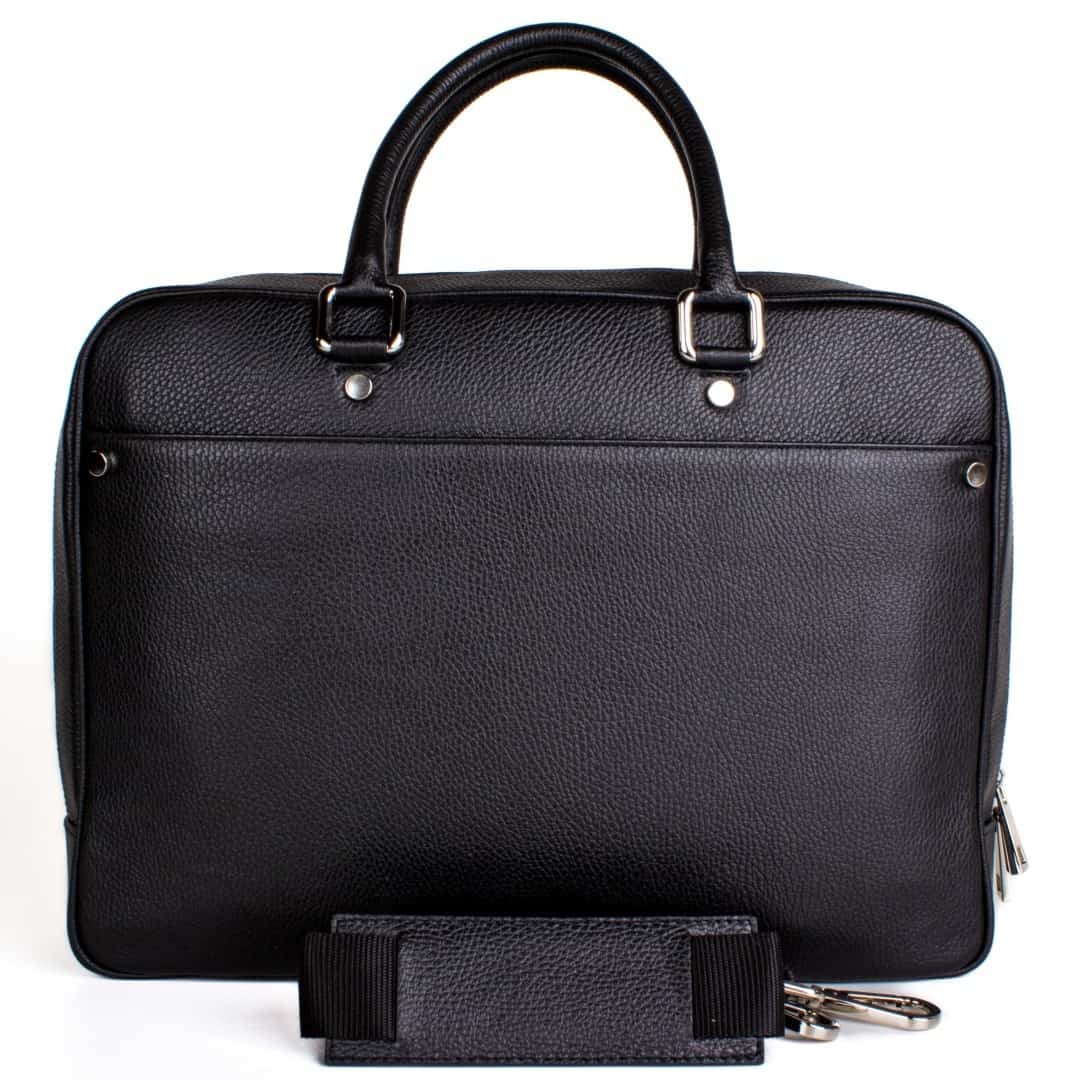 Usnjena poslovna torba Optimist Dion je kvalitetna univerzalna poslovna torba, ki je narejena iz vrhunskega govejega usnja. Praktična poslovna torba vsebuje en glavni predal z notranjim žepom, ki se odpira na vrhu s kovinsko zadrgo. Mehkejša torba oblike formata A4 z dvema usnjenima ročajema. Oblikovana spredaj z 1 večjim žepom in z 1 globokim notranjim predalom na zadrgo, ki ima na zadnji steni z ježkom ločen predal primeren za hrambo prenosnega računalnika dimenzije 15" tabličnega računalnika ali poslovnih dokumentov in na zadnji strani oblikovan 1 večji predal. Priložen tudi daljši pas za nošenje na rami. Močna, karakterna, praktična, prava poslovna torba, ki bo zagotovo pritegnila pozornost.