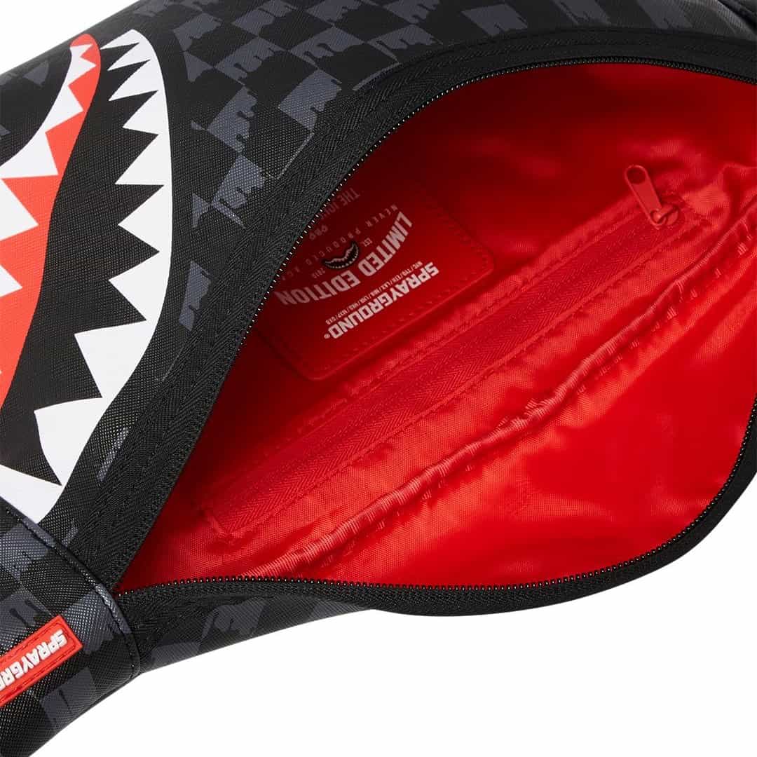 Torbica za okoli pasu Sprayground Drip Check Shark Crossbody Savvy je moderna torbica, ki združuje prepoznaven dizajn in izjemno funkcionalnost. Njen urbani slog izstopa s prefinjenimi grafičnimi motivi morskega psa na elegantni črni podlagi.