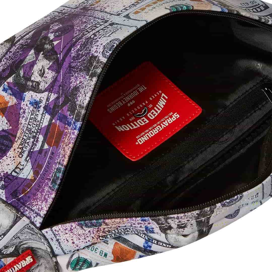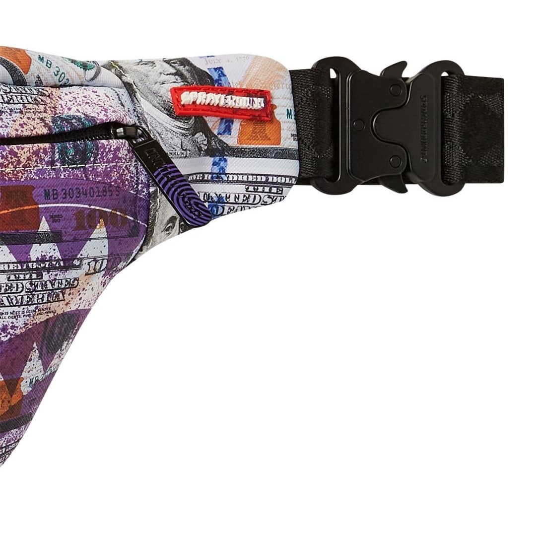 Torbica za okoli pasu Sprayground Money Splat Savvy Crossbody združuje edinstven in drzen dizajn z vrhunsko praktičnostjo. Zasnovana je z motivom bankovcev, prekritih z vijoličnim vzorcem, kar jo naredi izstopajočo in moderno.