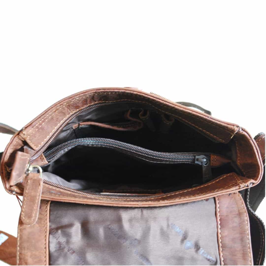 Usnjena torbica za čez ramo Green Wood Leo je torba tako za ženske kot za moške, ki cenijo kvaliteto ročne izdelave in vrhunskost pravega usnja tako na pogled kot na dotik. Izdelana je iz kakovostnega mehkega usnja in navdušuje v videzu z "rabljenim izgledom", notranjost torbe pa je obložena s kvalitetno tkanino. Usnjena torbica za čez ramo Green Wood Leo na poklop z magnetnim zapiranjem je sestavljena iz več prostornih predalov in žepov na zadrgo, kamor lahko shranite vse potrebne pripomočke. Zaradi svoje dobre razporeditve je izredno priročna in se nosi s prijetnim, prilagodljivim ramenskim trakom.