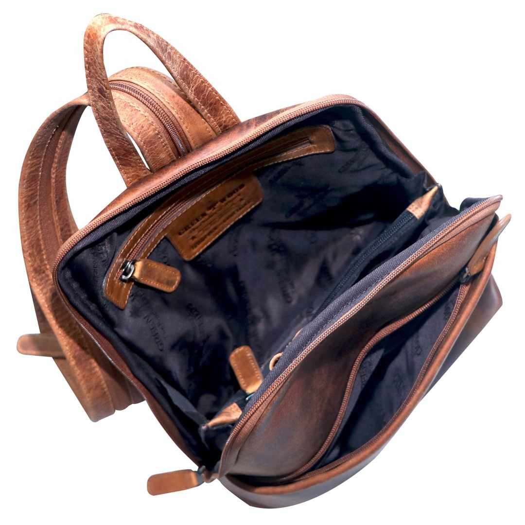 Usnjen nahrbtnik Green Wood Mery je eleganten usnjen nahrbtnik, zasnovan za vsakodnevne opravke in sodoben tempo življenja, saj združuje klasičen videz z izjemno praktičnostjo. V notranjosti ponuja več preglednih žepov in razdelkov, ki omogočajo varno shranjevanje osebnih predmetov, dokumentov in pripomočkov, zunanji žepi na zadrgo pa so odlični za hiter dostop do najnujnejših stvari. Trpežna izdelava iz pravega usnja, mehko odpiranje in udobni ramenski trakovi poskrbijo, da je nošenje prijetno in brezskrbno, njegova kompaktna oblika pa ohranja urejen videz v vseh priložnostih – od službe do mesta ali sproščenega izleta.