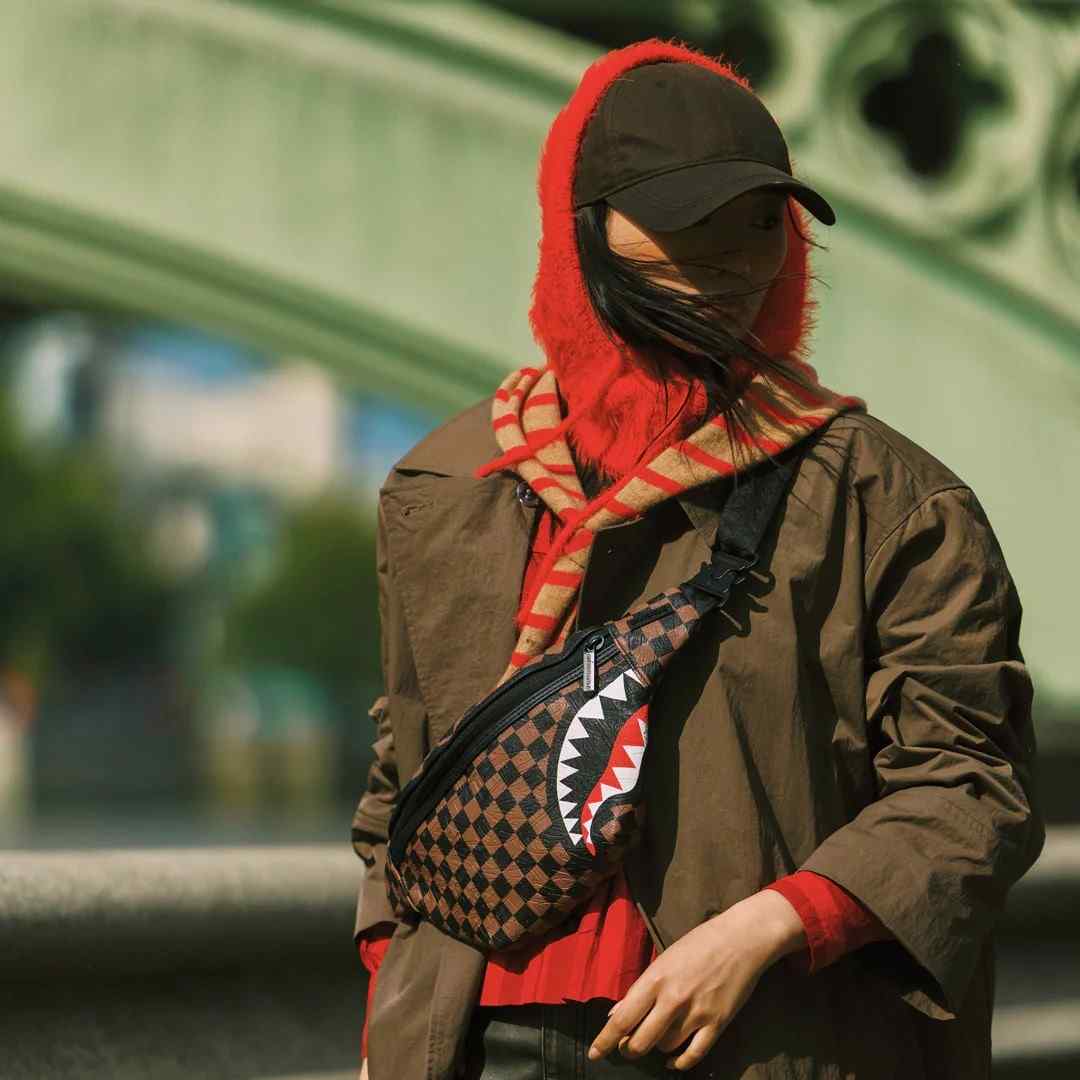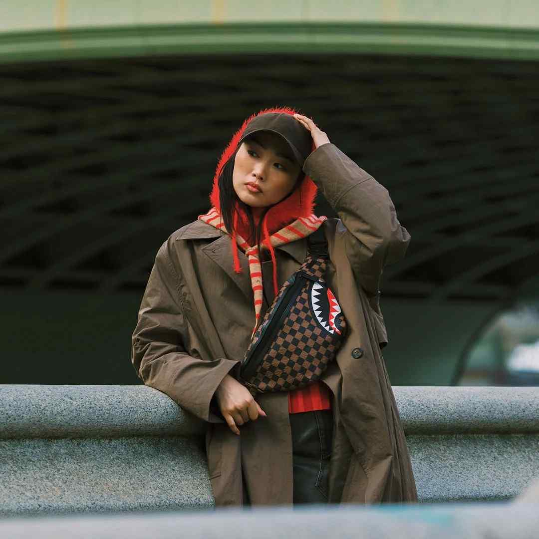 Waist bag Sprayground Check 2 Emboss Savvy Crossbody combines the iconic brown and black checkered pattern with an aggressive shark mouth motif that symbolizes power, speed and confidence. Its sporty-urban design makes the bag the perfect choice for everyday errands, travel, festivals, city walks or an active lifestyle. The adjustable strap with a metal buckle allows you to wear it around your waist or trendy over your shoulder, for maximum comfort and flexibility. You can easily put your phone, wallet, keys and other essentials that you always want to have at hand. The water-resistant material protects your belongings from rain and weather, while the quality stitching and robust zipper ensure a long life even with intensive use. This is not just a fashion accessory - it is your signature. It is created for individuals who live dynamically, think boldly and want to stand out in the city bustle.