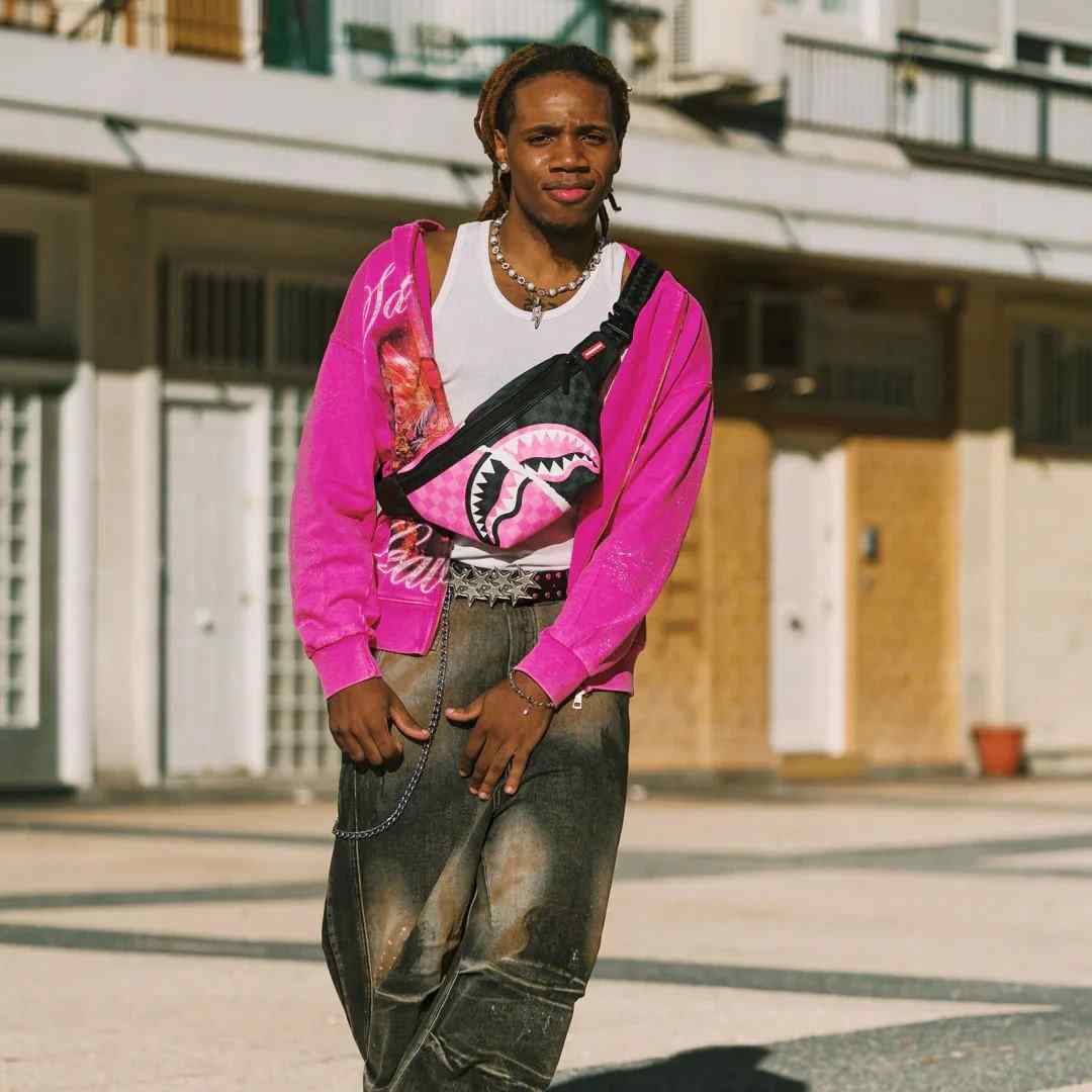 Torbica za okoli pasu Sprayground Pink And Black Tear Sip Savvy Crossbody z drzno kombinacijo rožnate in črne barve ter grafiko, ki kriči po originalnosti, je ta torbica zasnovana za tiste, ki želijo živeti hitro, brezkompromisno.
