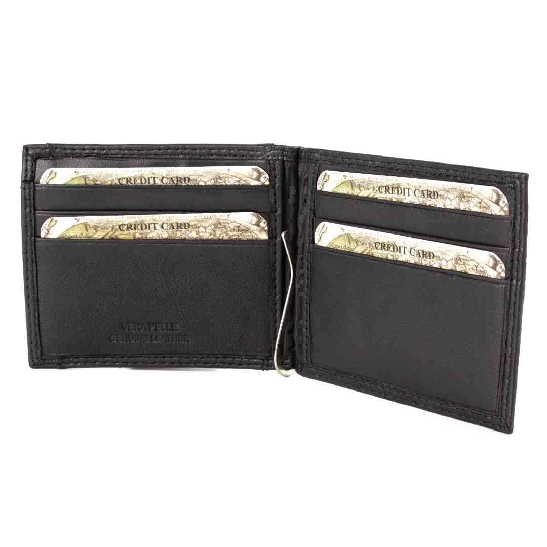 Usnjena denarnica s sponko Optimist Kayi je narejena iz finega trpežnega naravnega usnja. V notranjosti denarnice se nahaja kovinska sponka za gotovino, ki varno drži vaše bankovce, medtem ko šest rež za kartice omogoča, da imate vse pomembne kartice vedn