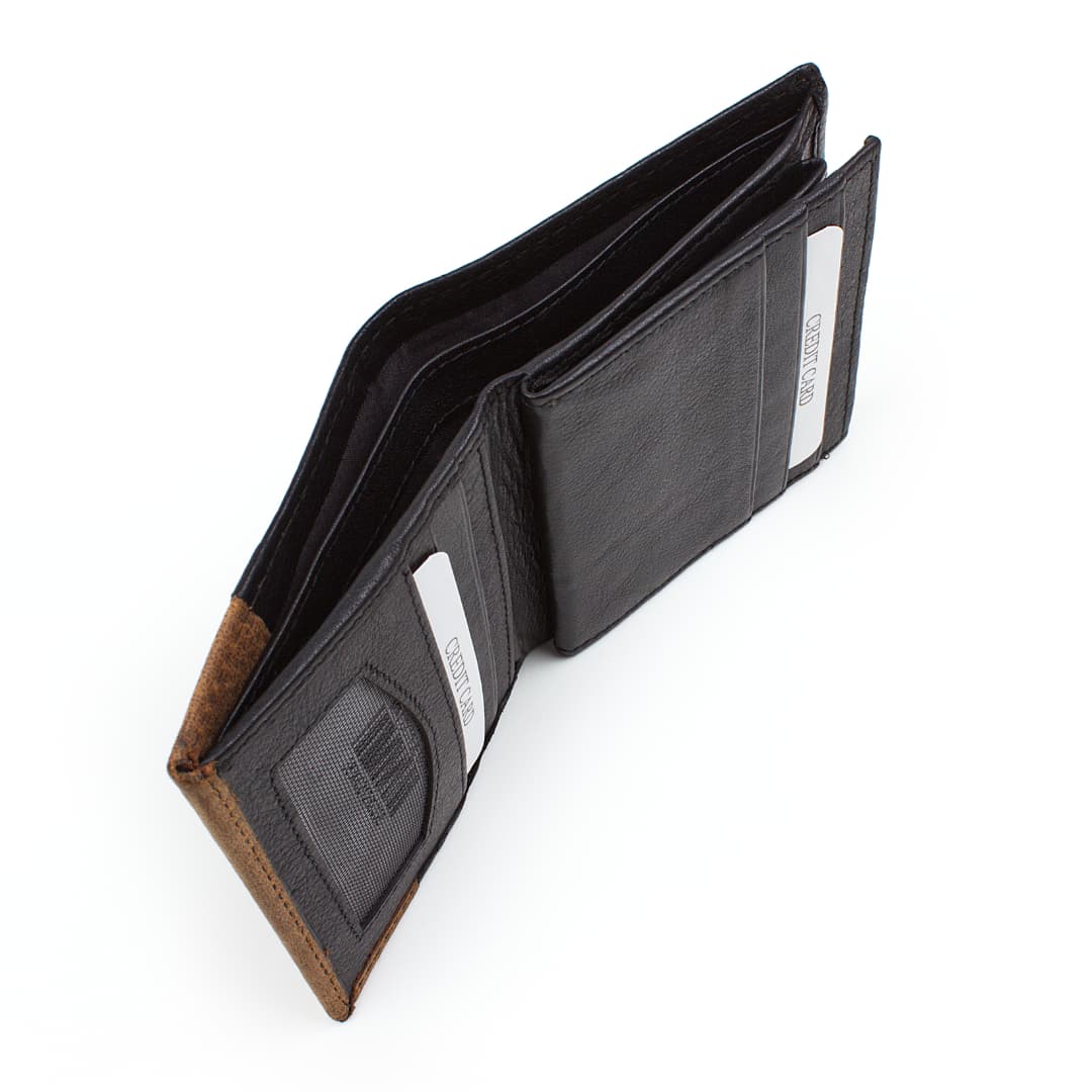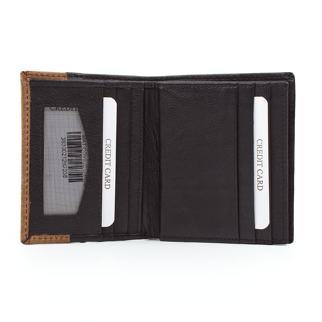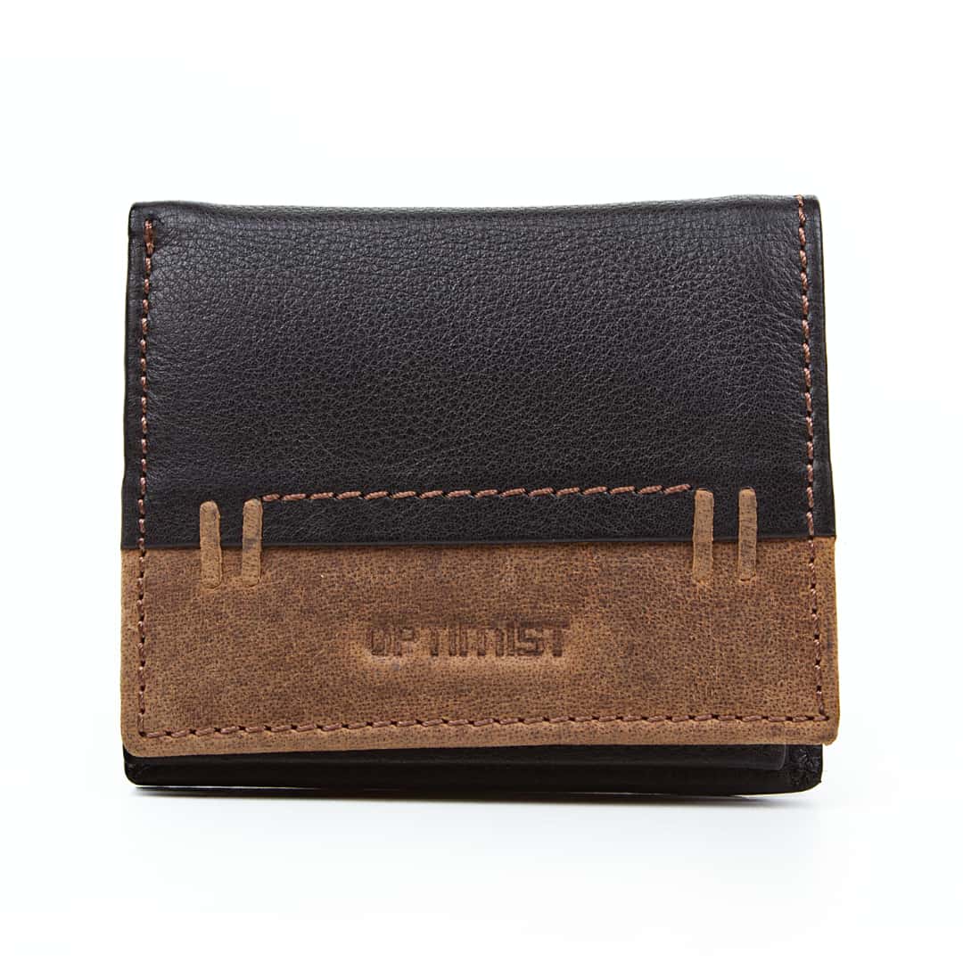 Moška usnjena denarnica Optimist 03500 s kombinacijo mehkega in brušenega naravnega usnja je praktična in idealna prav za vsak žep, saj vanjo lahko shranite 7 bančnih kartic, bankovce in kovance. Dekorativni šivi ustvarijo pridih retro - vintage stila.