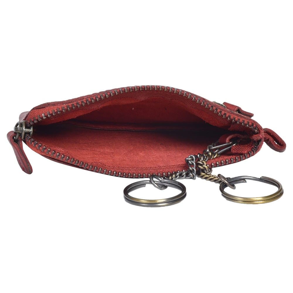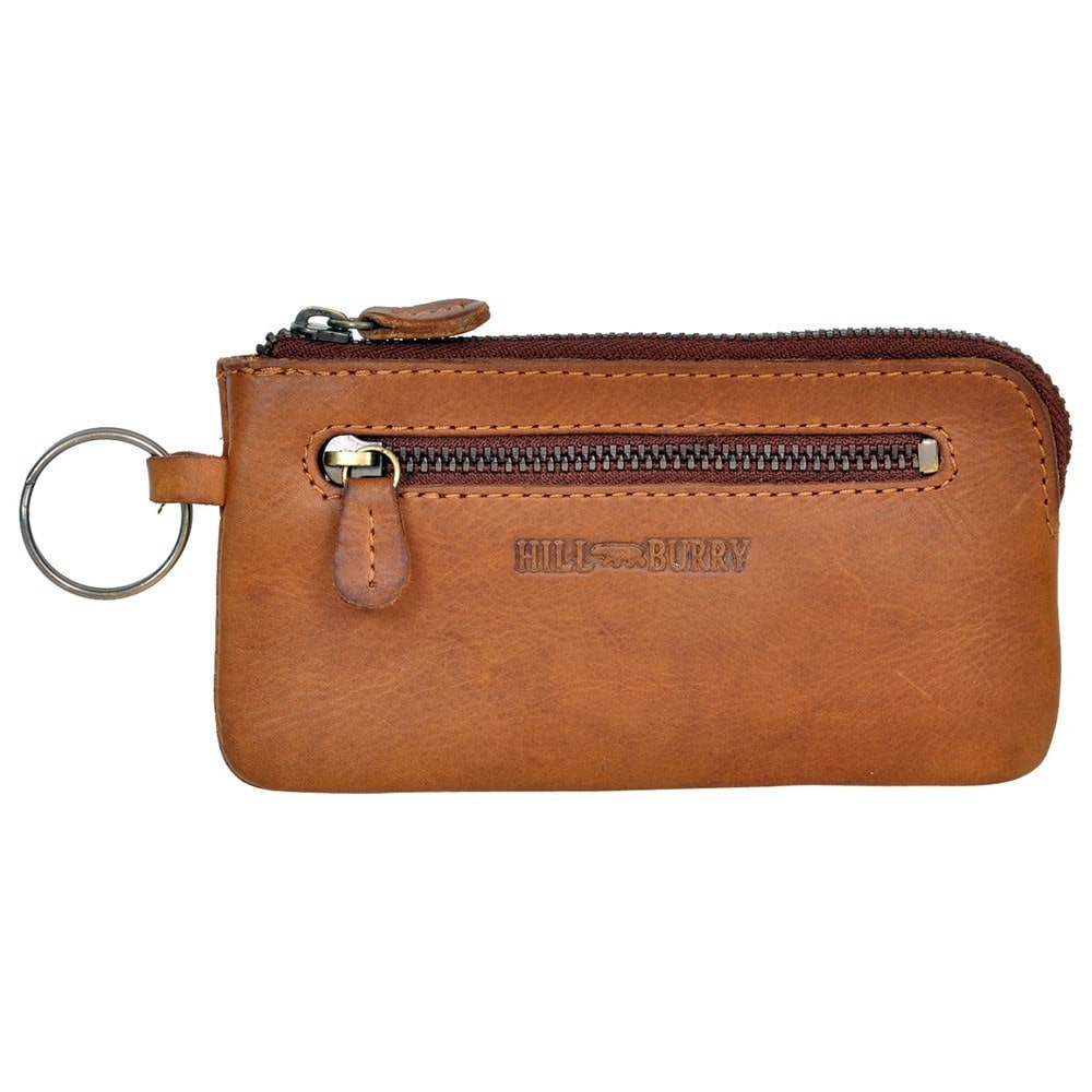 Usnjen etui za ključe Hill Burry Zip je narejen iz kakovostnega kompaktnega naravnega usnja. Etui ima dva predala, ki se zapirata z kovinsko zadrgo. En predal je glavni in v tem imate dve verigi z obročki za ključe. Drugi predal pa je na zunanji strani in je manjši. Usnjen etui za ključe vam lahko služi tudi kot majhna usnjena denarnica, saj je dovolj prostorna za shranjevanje vaše gotovine in nekaj kartic.