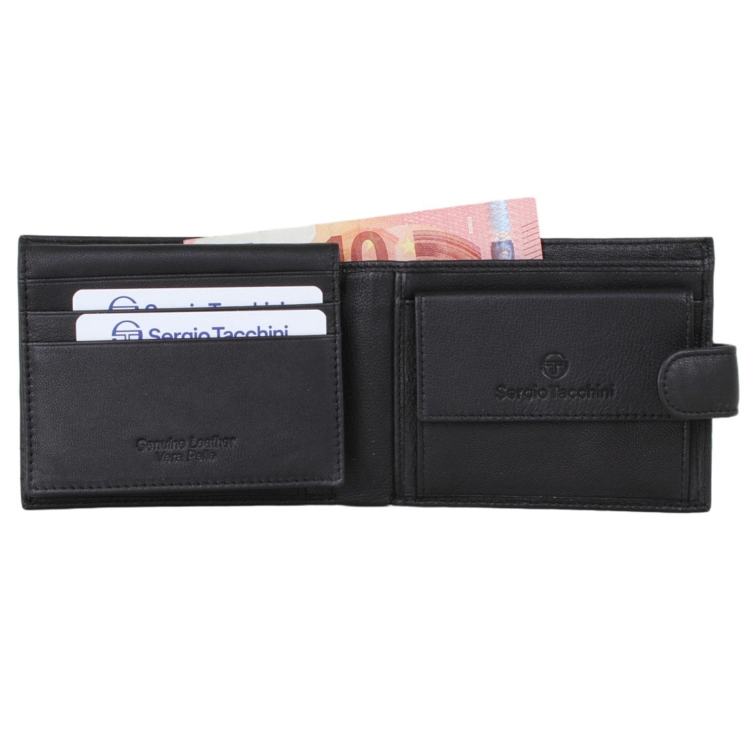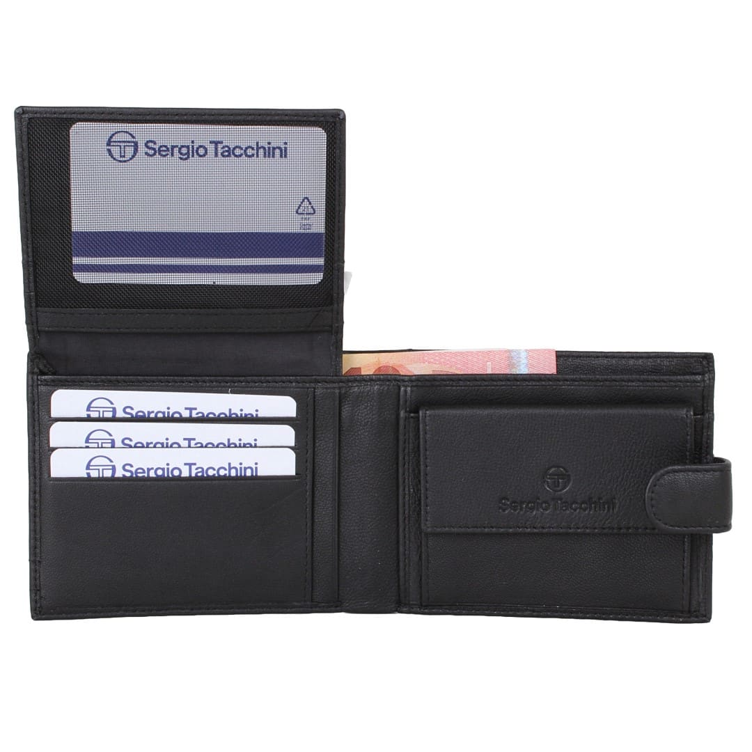 Usnjena moška denarnica Sergio Tacchini Fabrizio je ustvarjena za moškega, ki išče popolno ravnovesje med stilom, funkcionalnostjo in prestižem. Izdelana je iz visokokakovostnega naravnega usnja, ki navdušuje s svojo trpežnostjo.