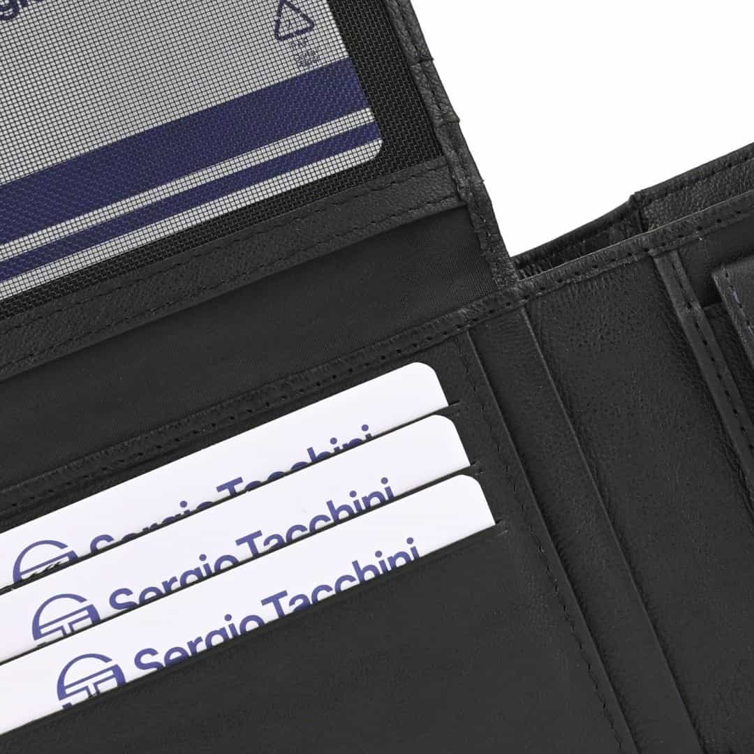 Usnjena moška denarnica Sergio Tacchini Italia združuje eleganco, funkcionalnost in vrhunsko italijansko oblikovanje. Izdelana je iz visokokakovostnega pravega usnja, ki zagotavlja trpežnost, odpornost na obrabo in prijeten občutek na dotik.
