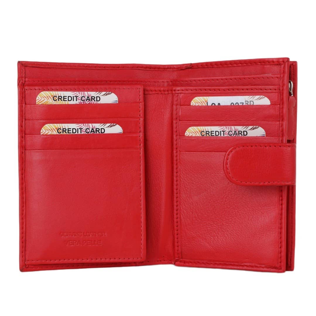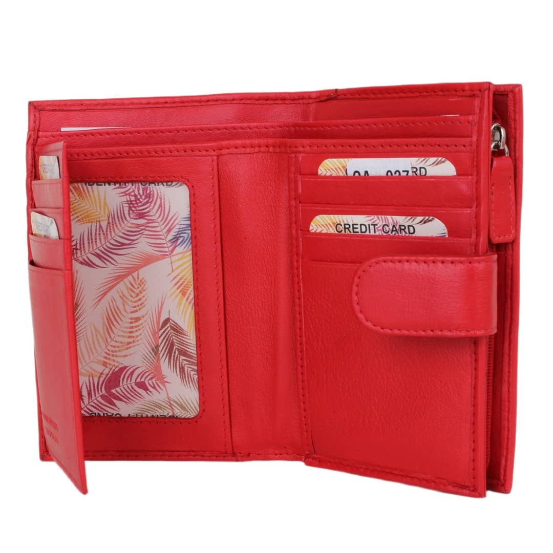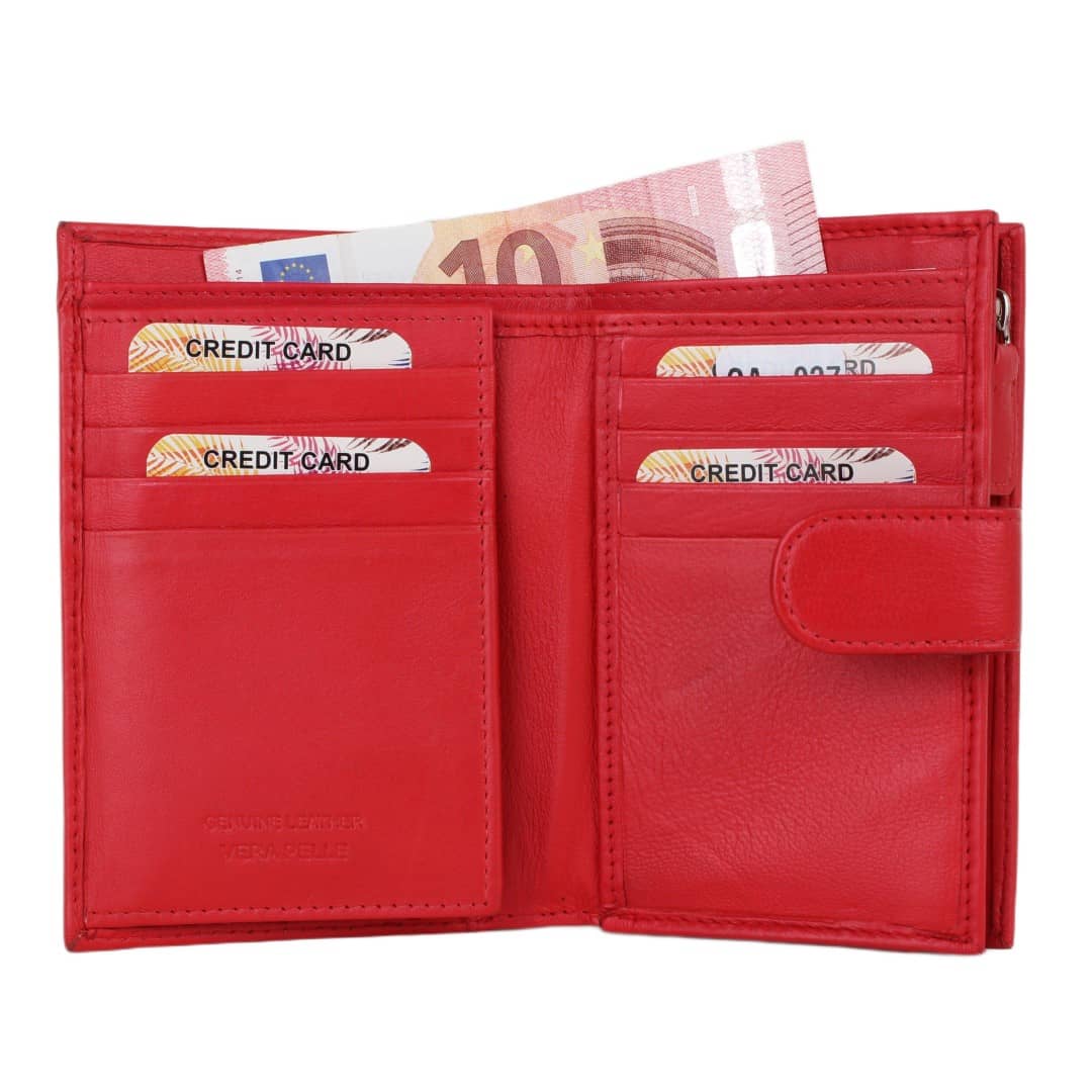 Ženska usnjena denarnica Anila je izdelana iz vrhunskega naravnega usnja, ki navdušuje s svojo prijetno mehko teksturo, kakovostjo in udobjem. Njena pokončna oblika s prečnim usnjenim pasom poskrbi za dodatno varnost, hkrati pa poudari izvirno oblikovno dovršenost. V notranjosti ponuja obilo prostora za kartice, dokumente, gotovino in kovance, pri tem pa ostaja kompaktna in priročna. S številnimi razdelki in predalom za kovance na zadrgo je ta prostorna ženska denarnica idealna za vsakodnevno uporabo – tako v poslovnem svetu kot v prostem času. Čudovita ženska denarnica, ustvarjena za tiste, ki cenijo ravnovesje med stilom in praktičnostjo – naj bo to v brezčasni črni, skrivnostni roza, elegantni bež, živahni rdeči ali sveže zeleni barvi.