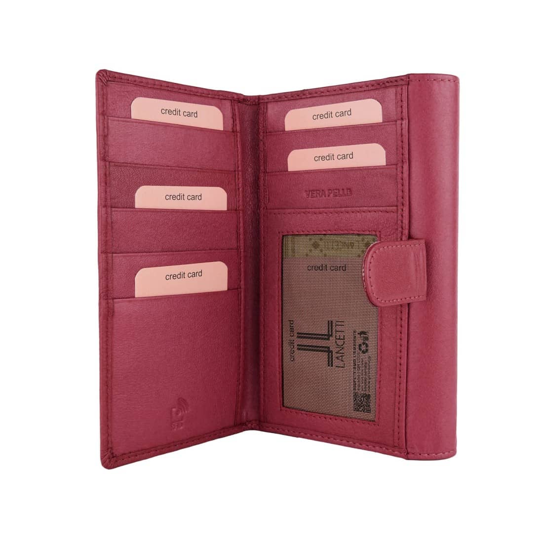 Ženska usnjena denarnica Lancetti Lady je narejena iz kakovostnega pravega usnja, ki je ne le luksuzno na otip, temveč tudi simbol trajne elegance. Vaša varnost je naša prioriteta. Usnjena denarnica ima vgrajeno RFID zaščito, da se izognite nepooblaščenemu dostopu do vaših osebnih podatkov na karticah, prostorno oblikovanje pa omogoča urejenost in enostaven dostop do vsega, kar potrebujete ne glede na to, ali je to denar, kartice, kovanci ali dokumenti.