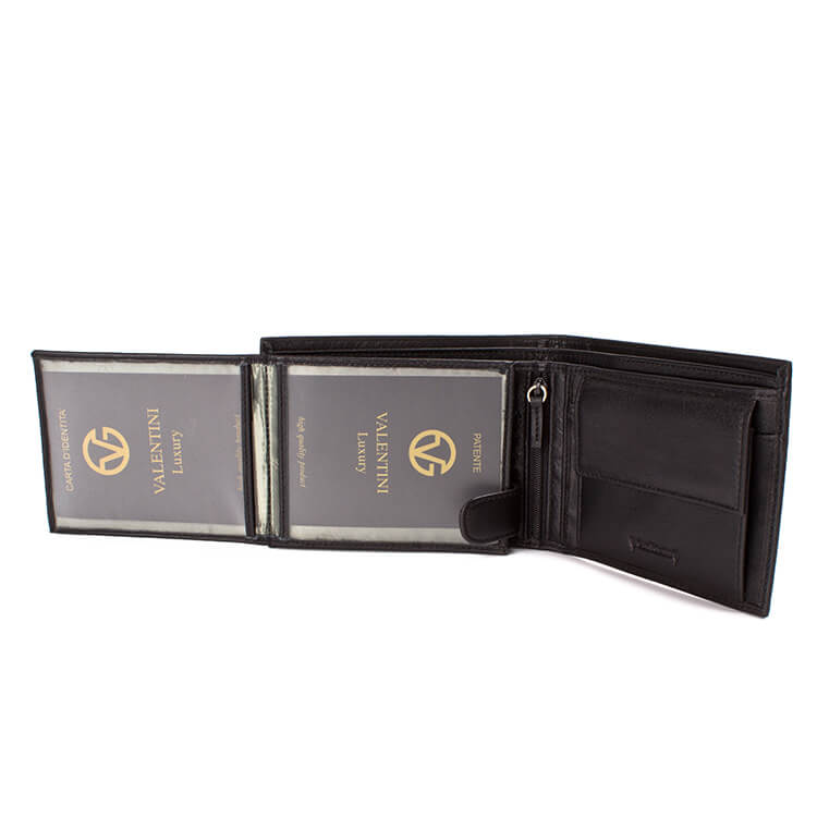 Moška usnjena denarnica Valentini Luxury 306-261 je izdelana iz naravnega in prefinjenega usnja. Notranjost je prostorna, tako da boste lahko vanjo shranili vse vaše nakupovalne in bančne kartice, denar, fotografije in še in še.